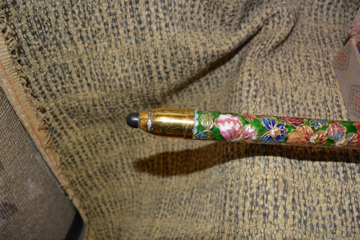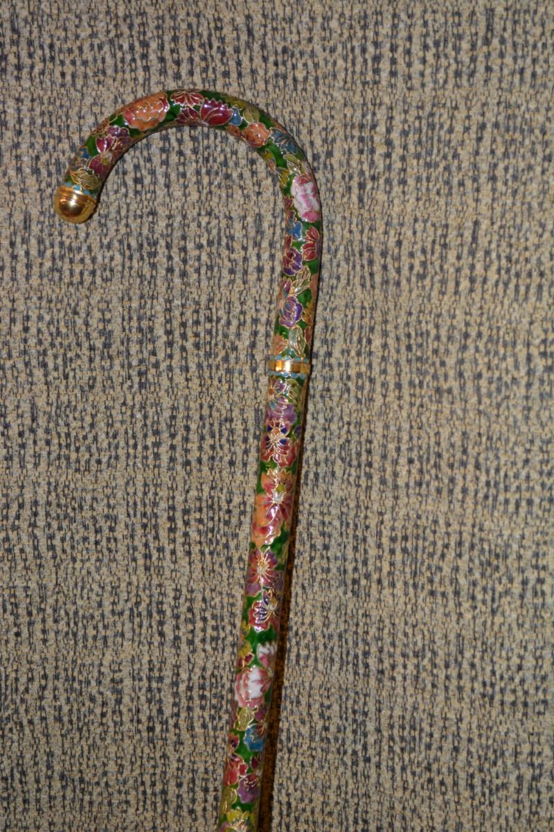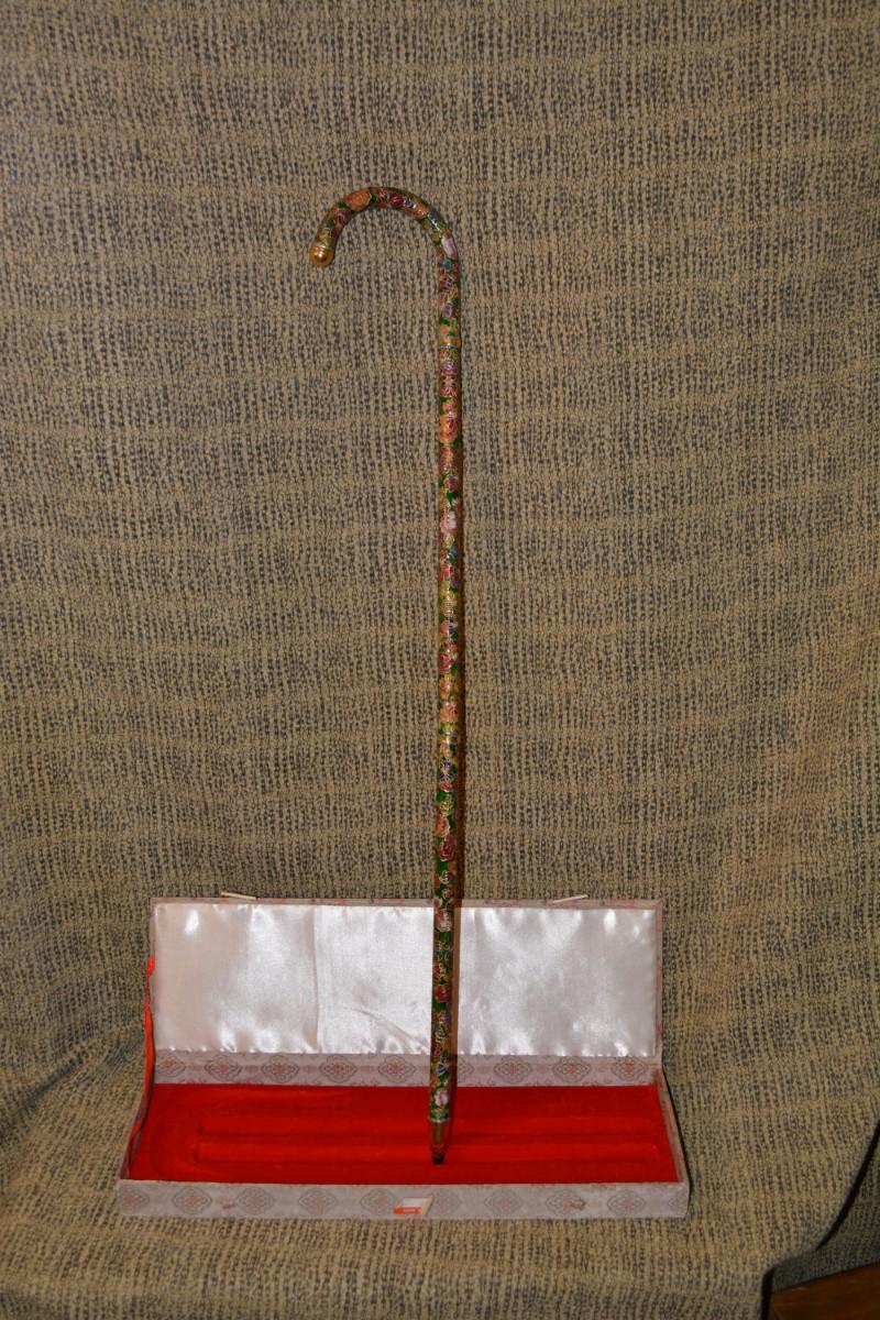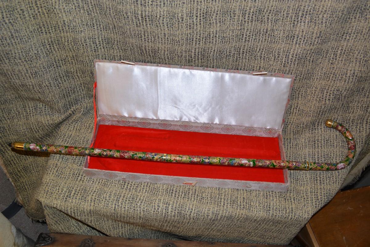 Vintage 33” 3 Section Cloisonne Cane w/ Beautiful Case, China