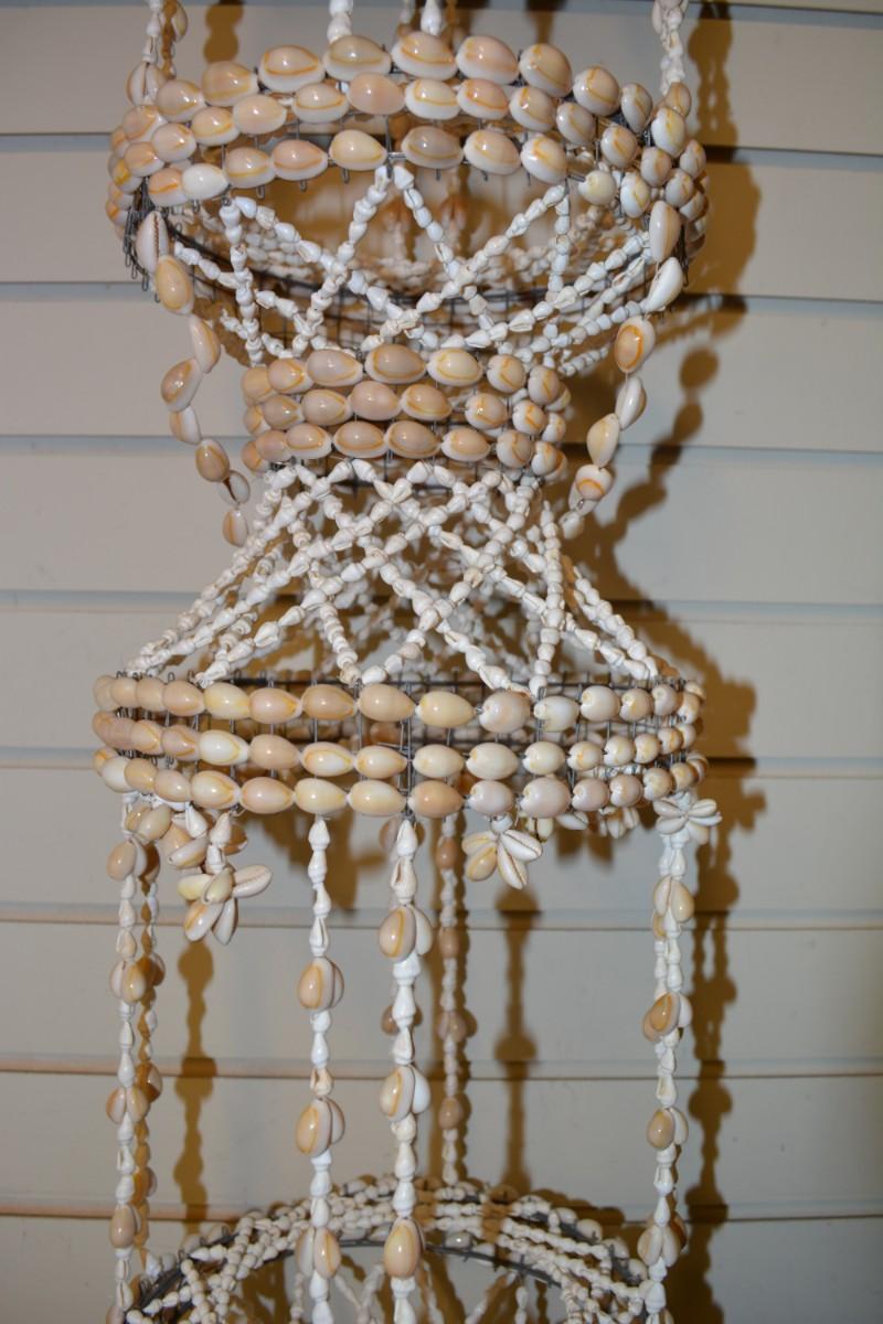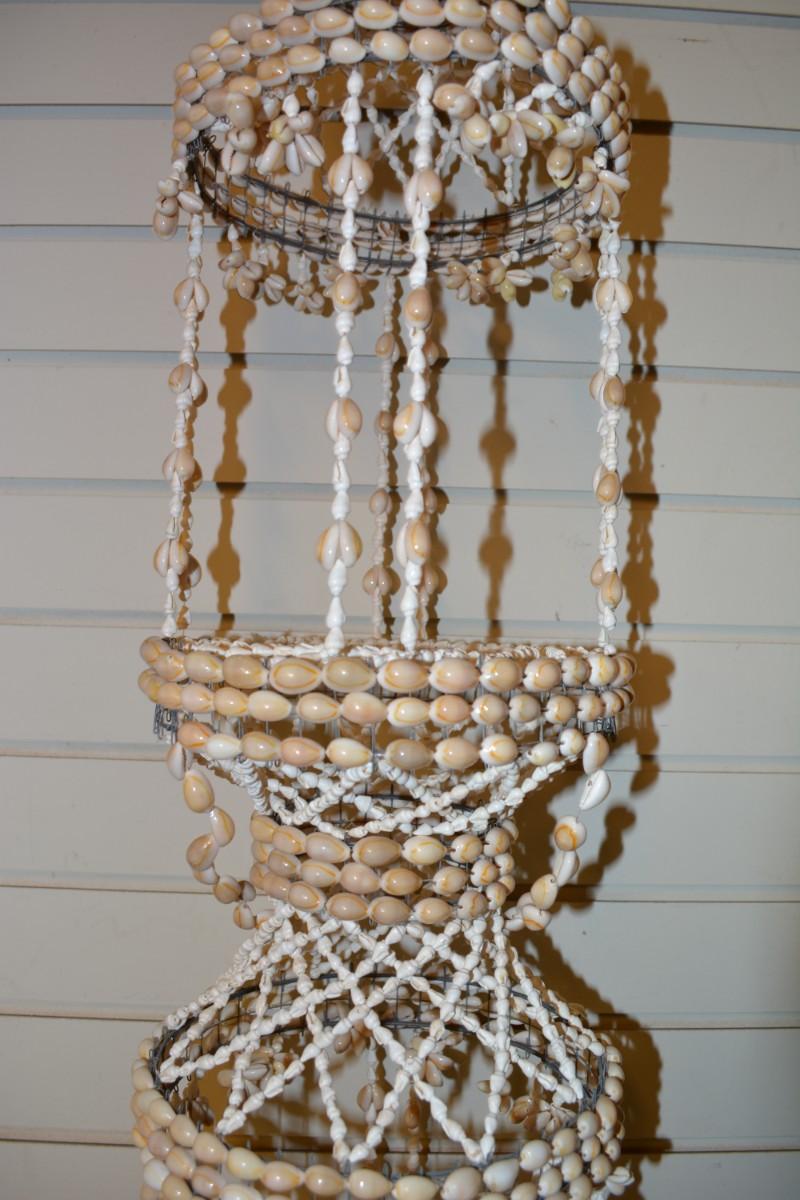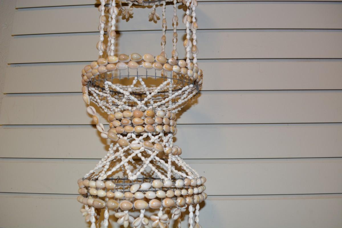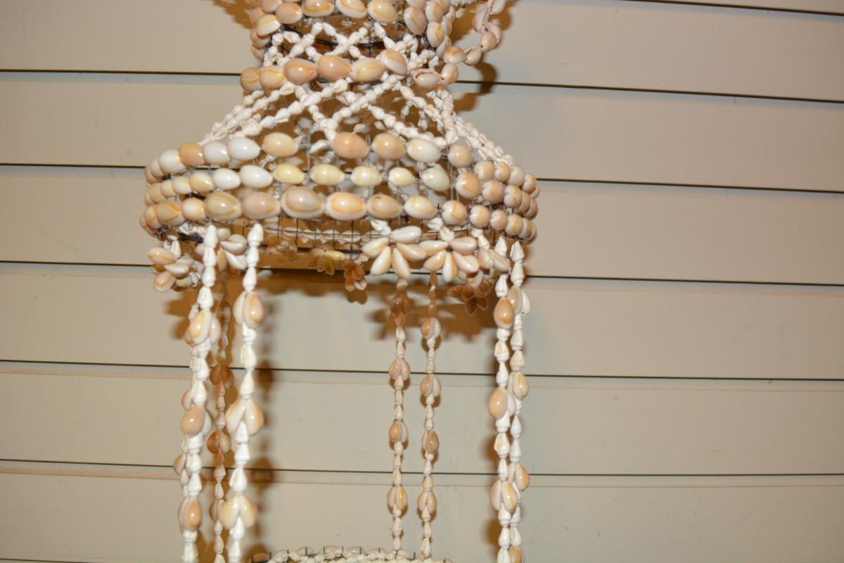Vintage 39” 2 Tier Cowrie Shell Plant Hanger