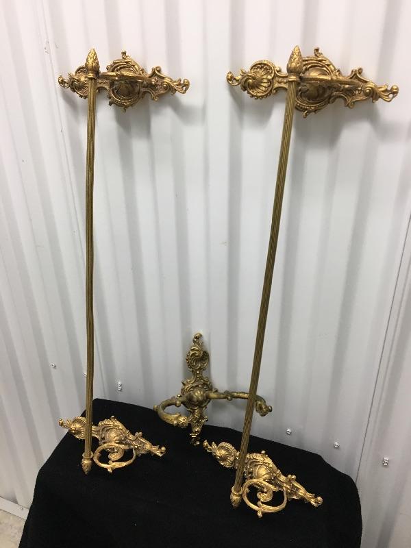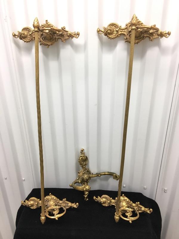 Vintage 3pc Brass Bathroom Towel and TP Holders