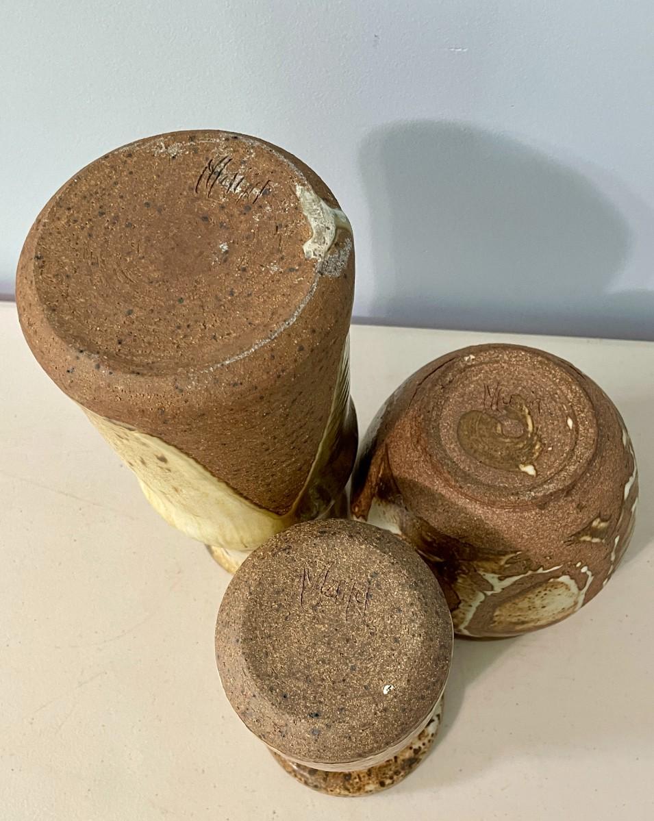Vintage 3pc hand-thrown pottery vase lot by Maija Hay