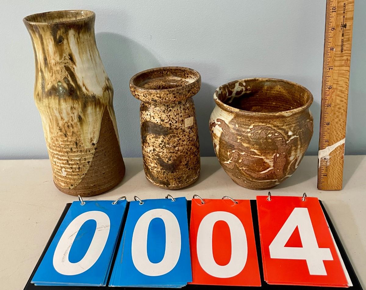 Vintage 3pc hand-thrown pottery vase lot by Maija Hay