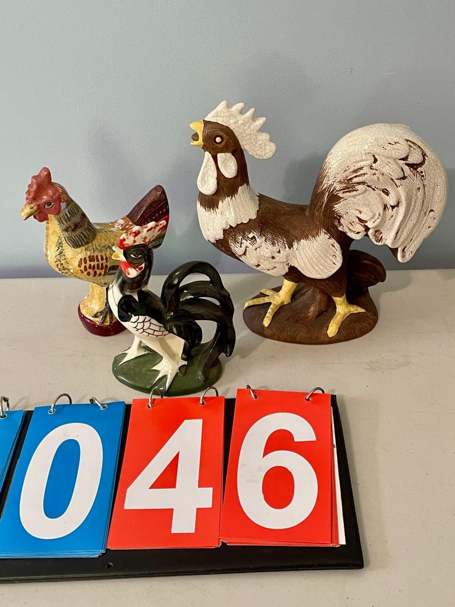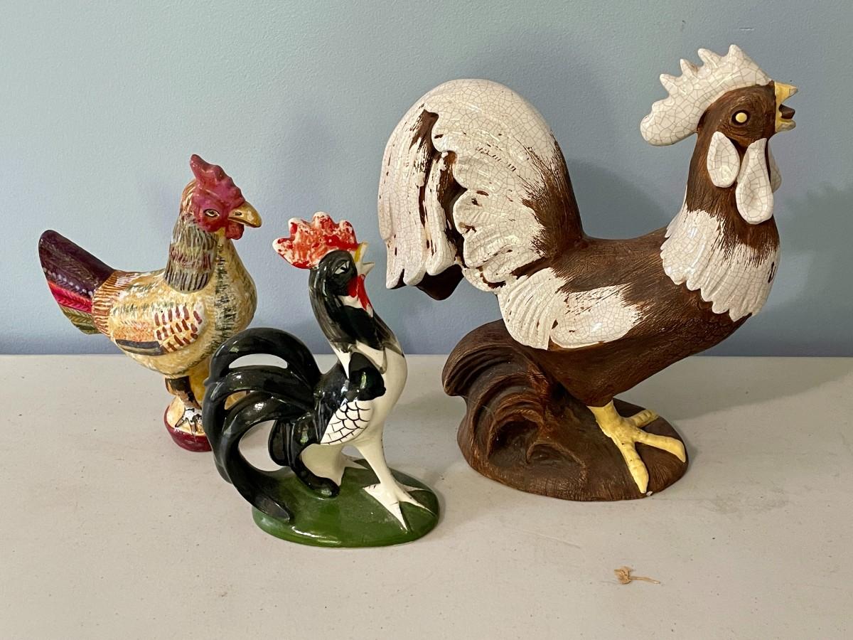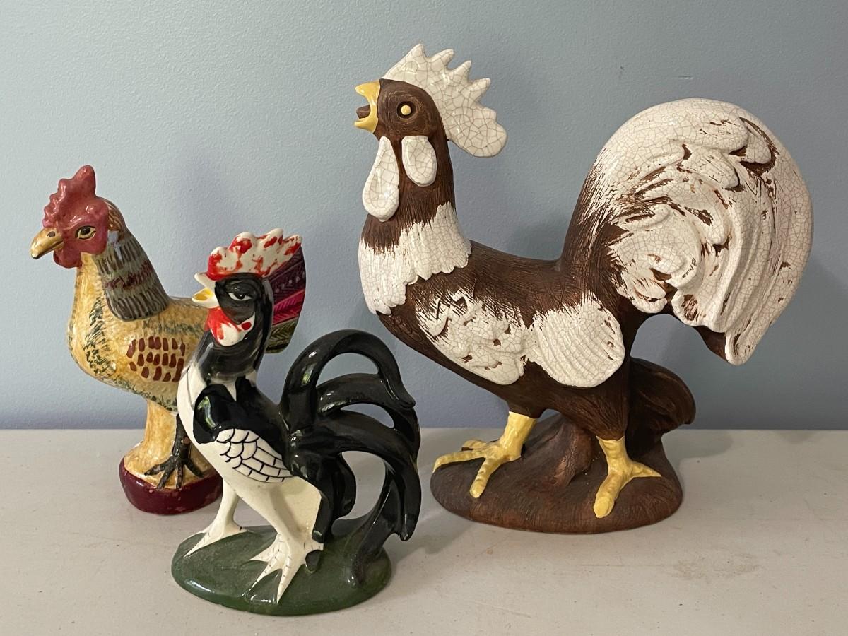 Vintage 3pc lot of ceramic & chalkware roosters