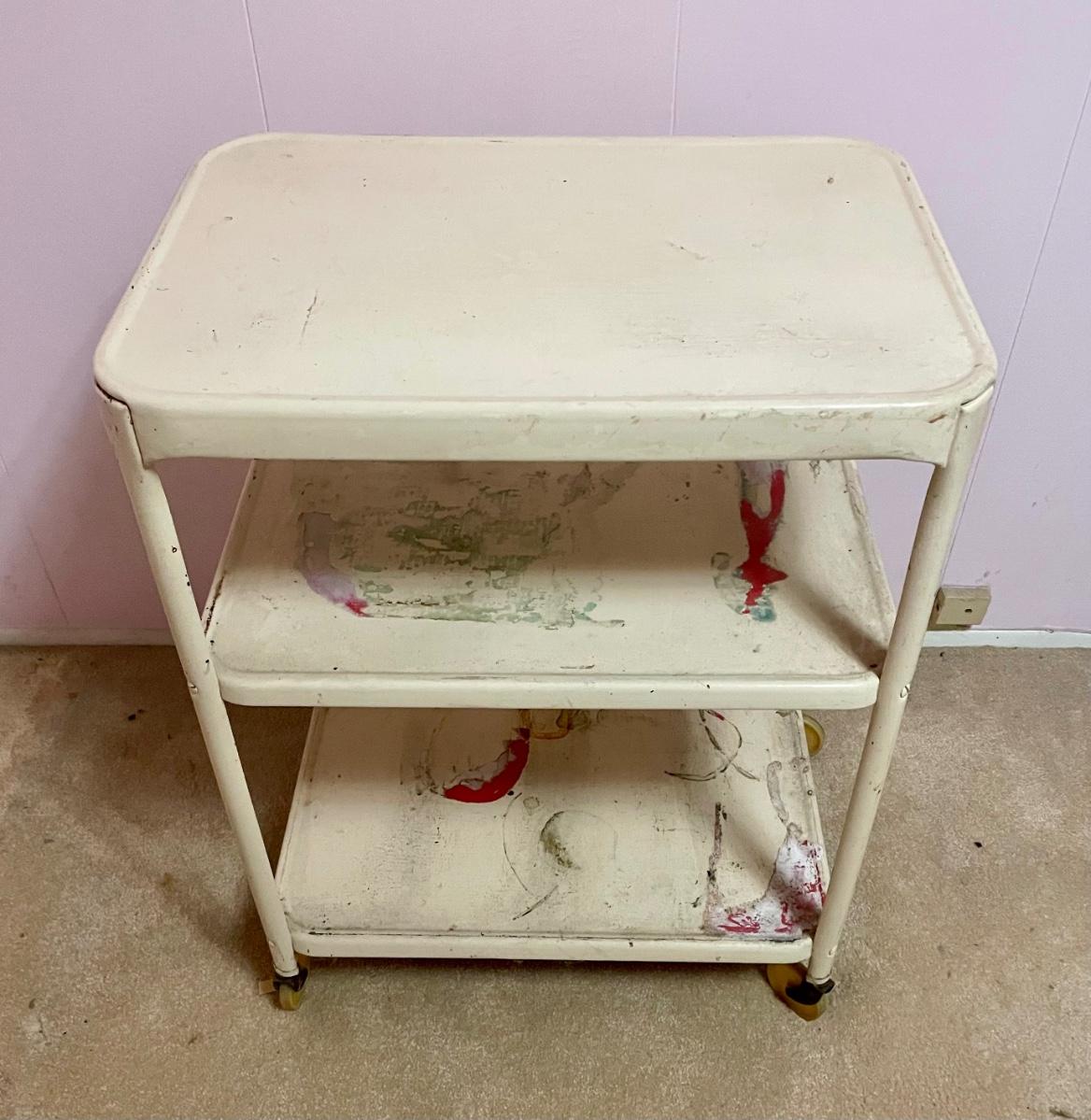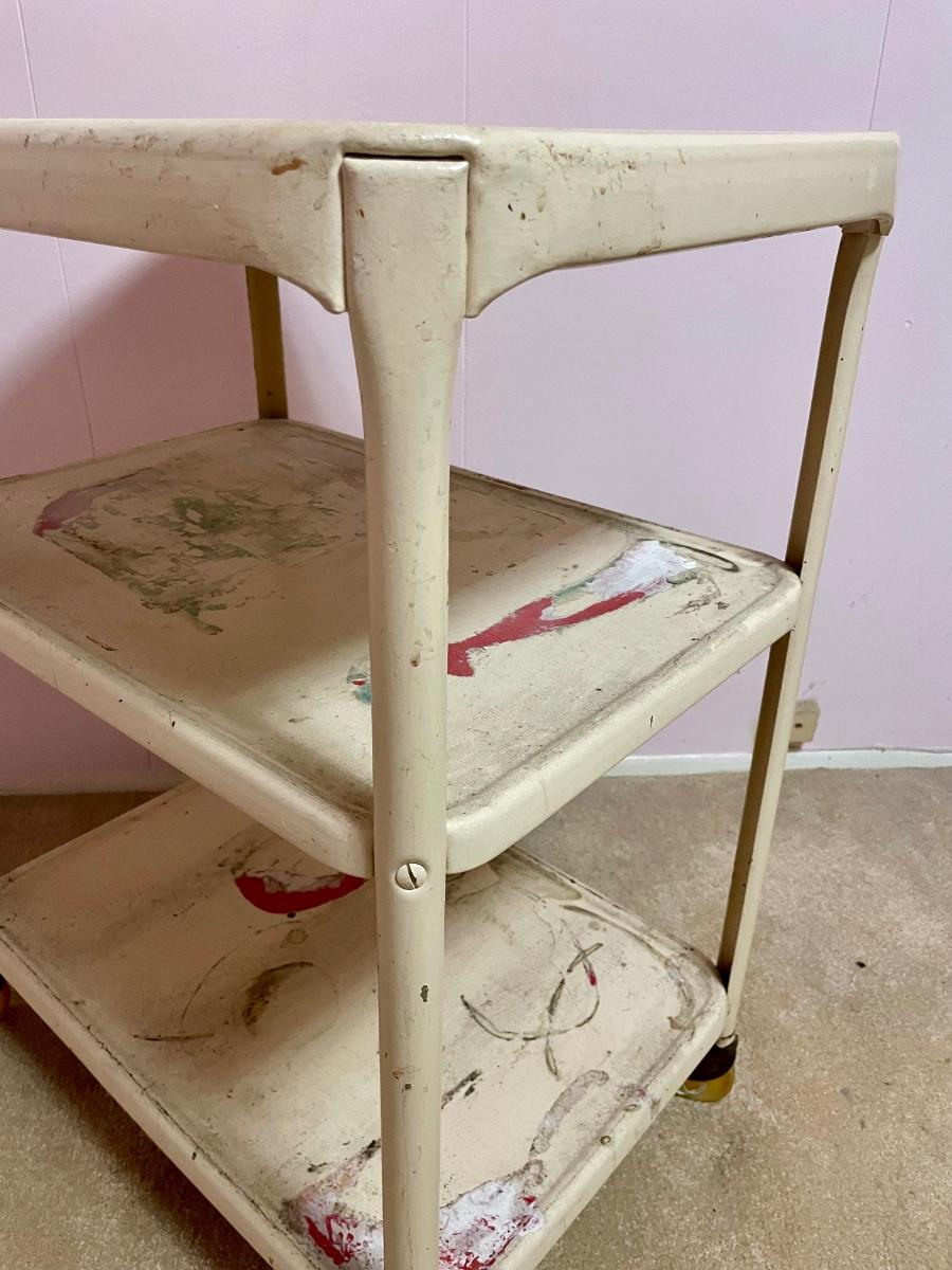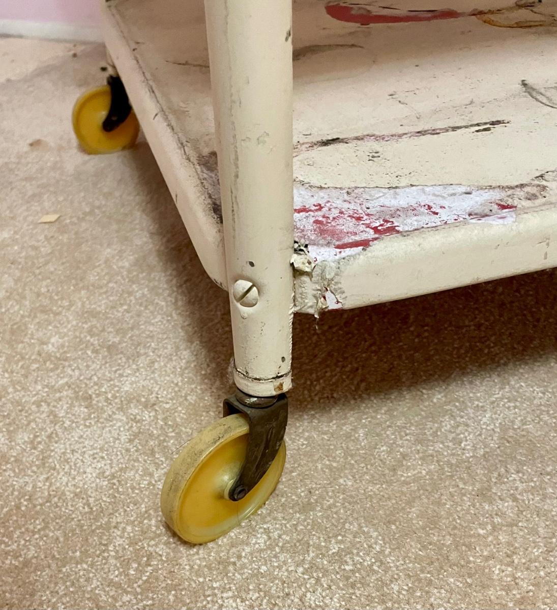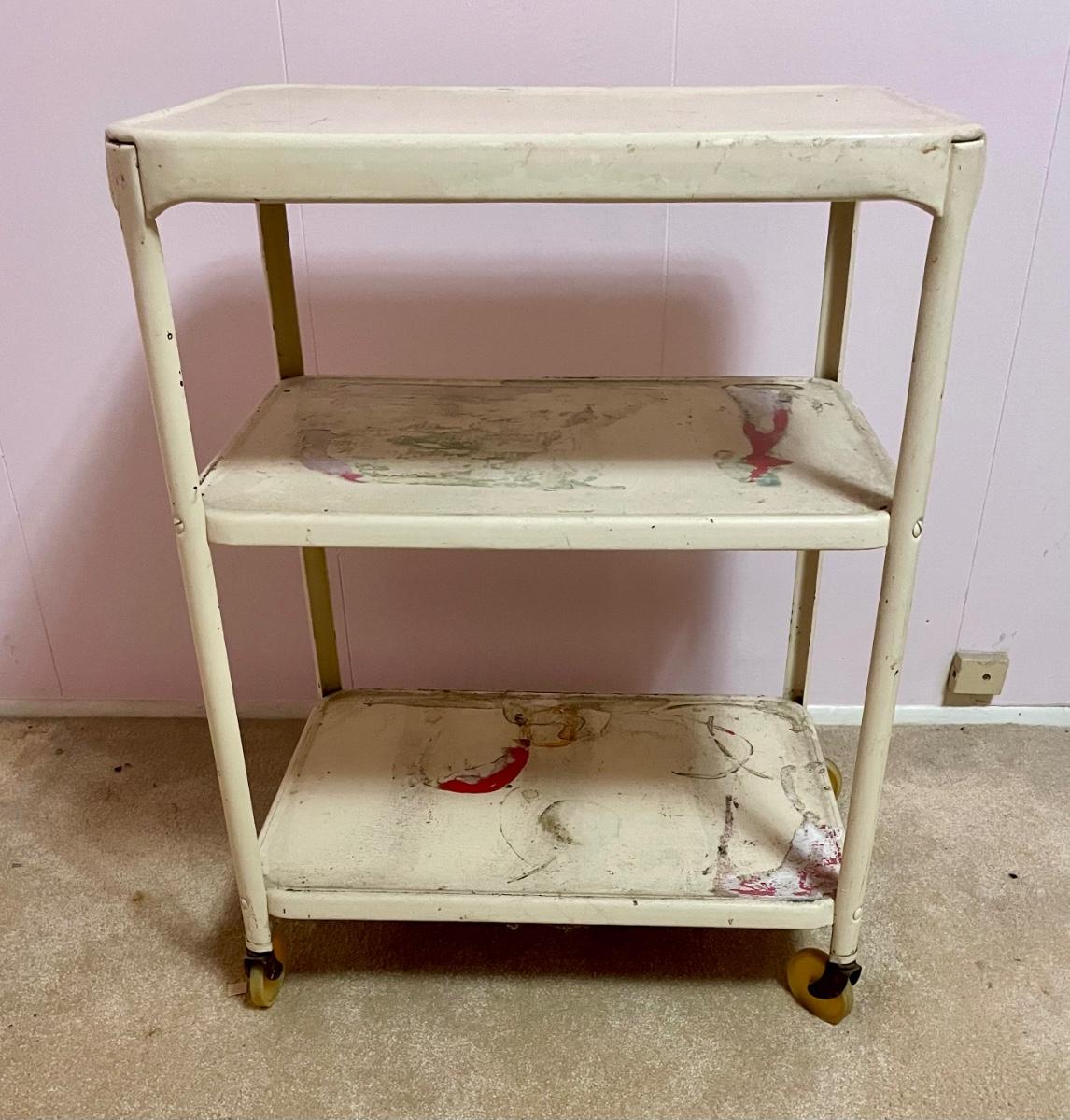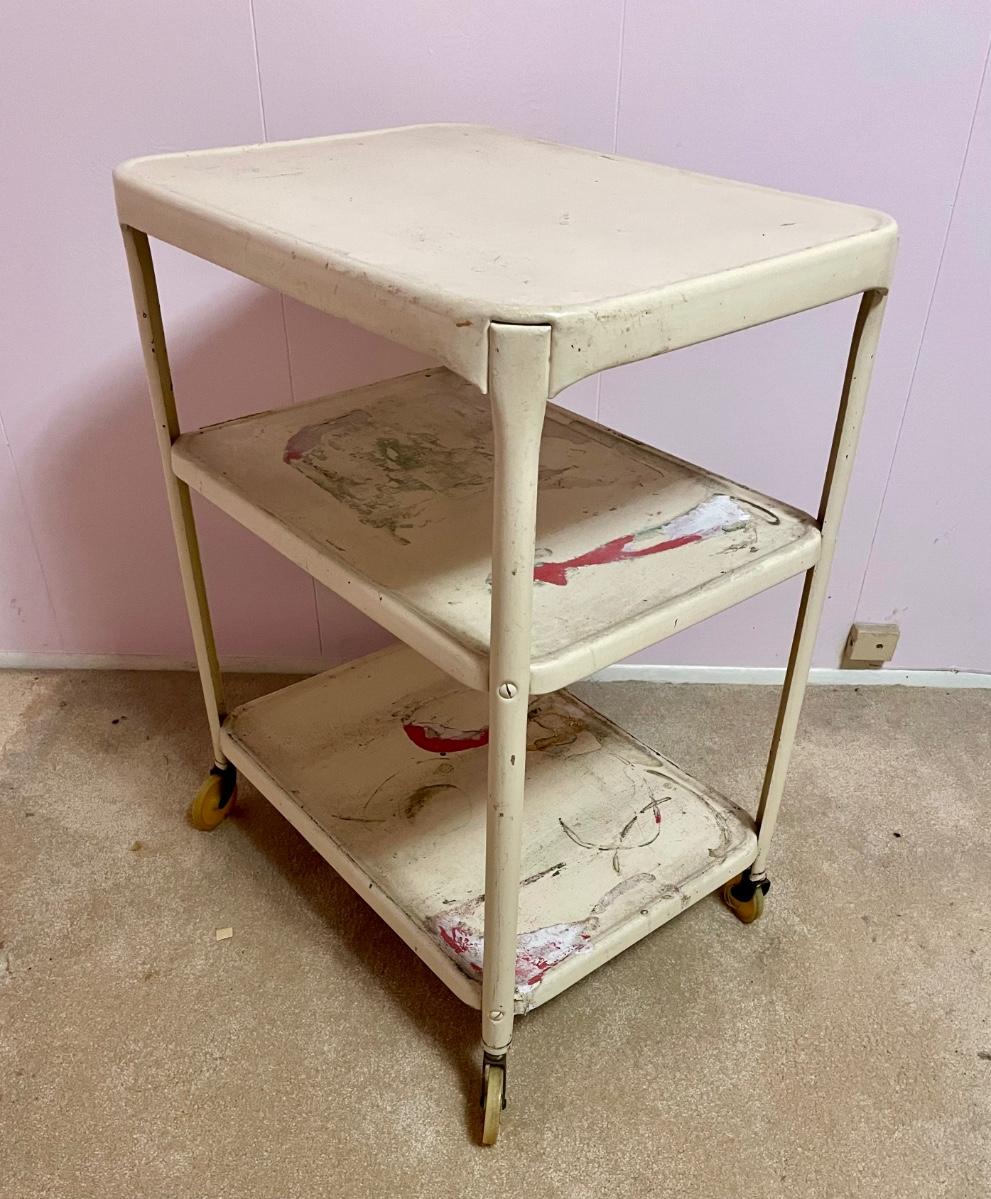 Fair condition, all 4 hard plastic wheels are intact. Approx. 24” x 17” x 31” tall.