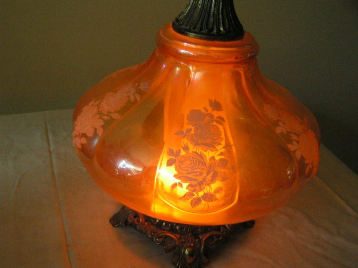 Vintage 3-way table lamp w/lighted glass base, 36" tall,1 of 2