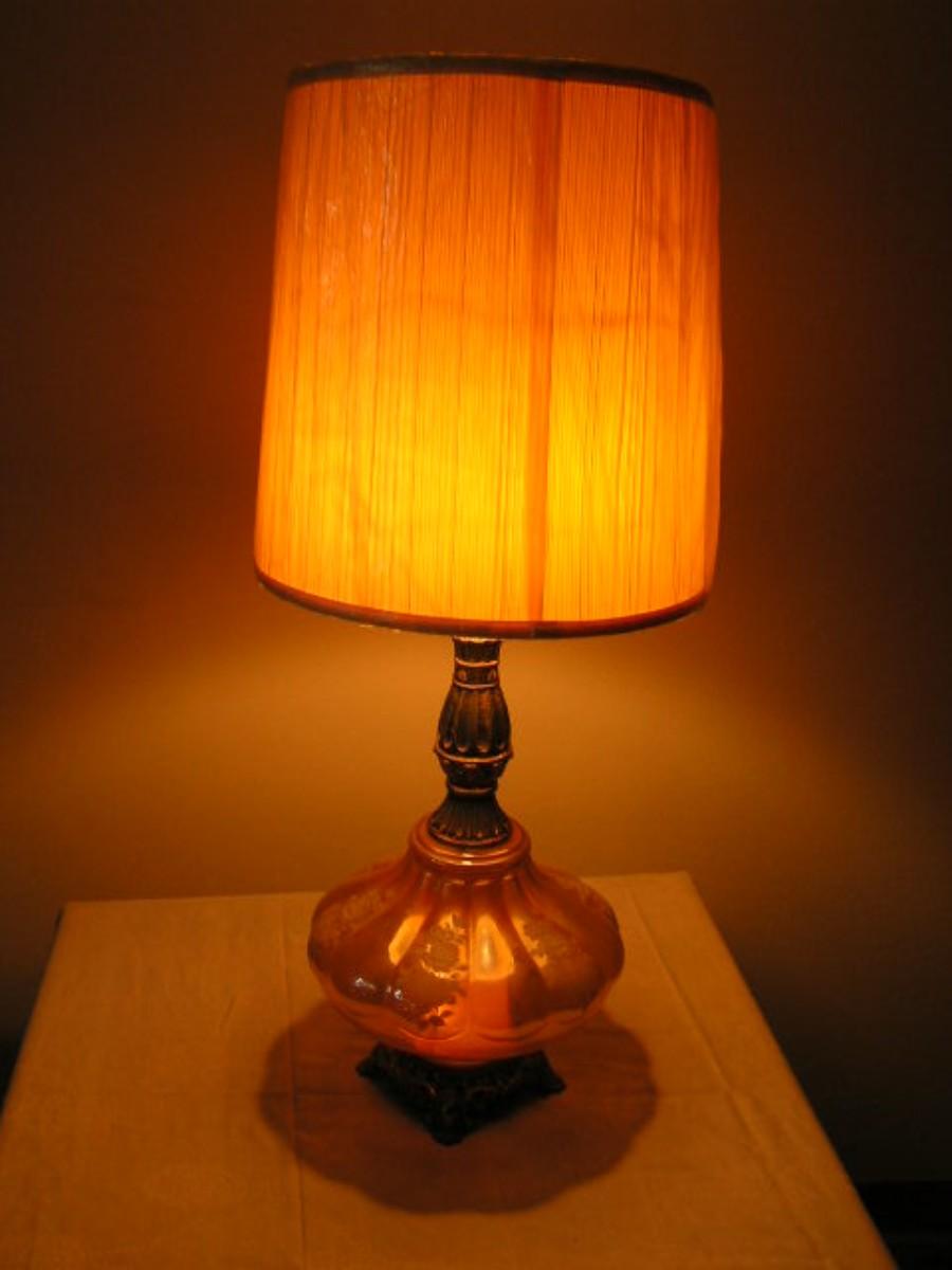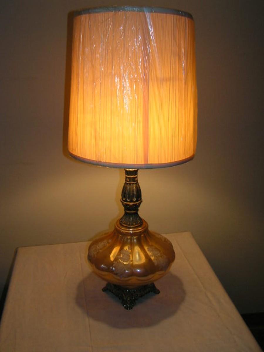 Vintage 3-way table lamp w/lighted glass base, 36" tall, clear protective covering still on the shade, 2 of 2