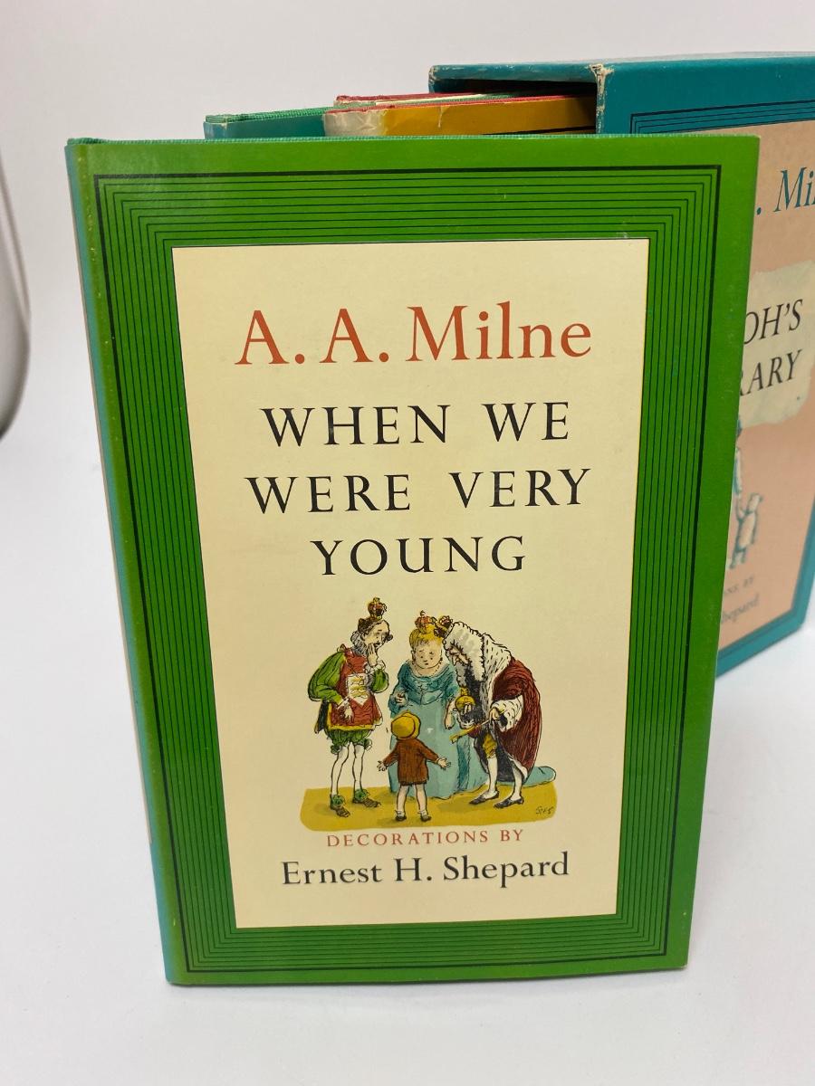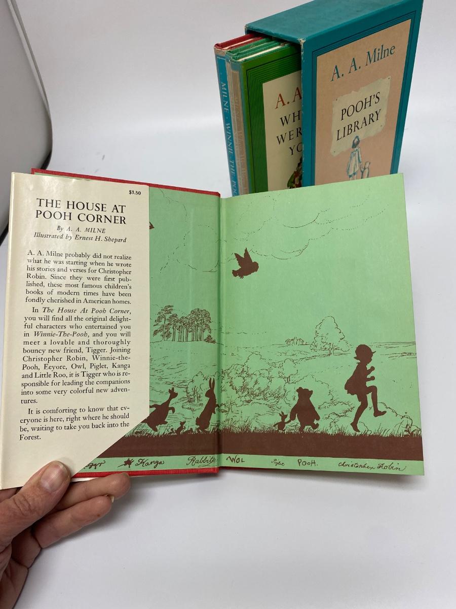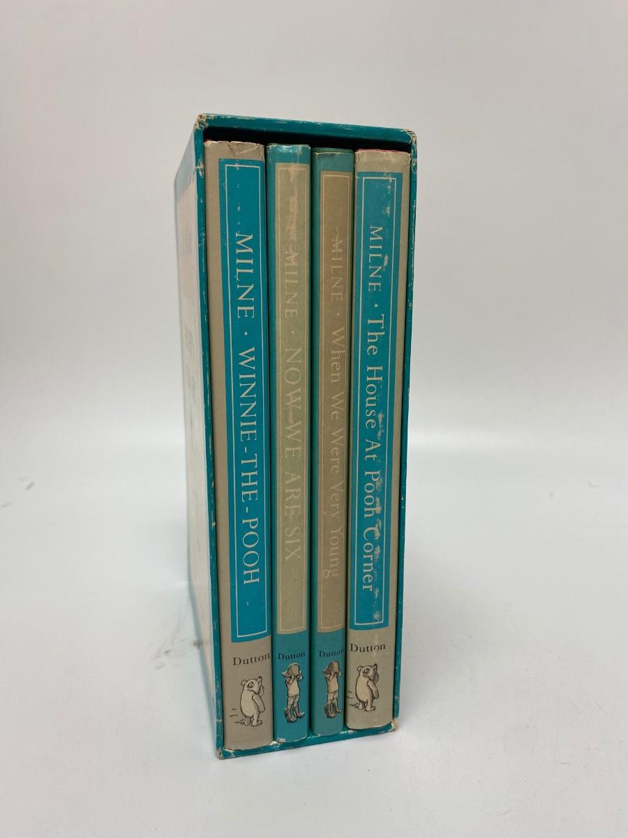 Vintage 4 book set "Pooh's Library" by A. A. Milne. From the early 1960s. Includes Winnie the Pooh, The House at Pooh Corner, When We Were Very Young, and Now We Are Six. In good vintage condition.