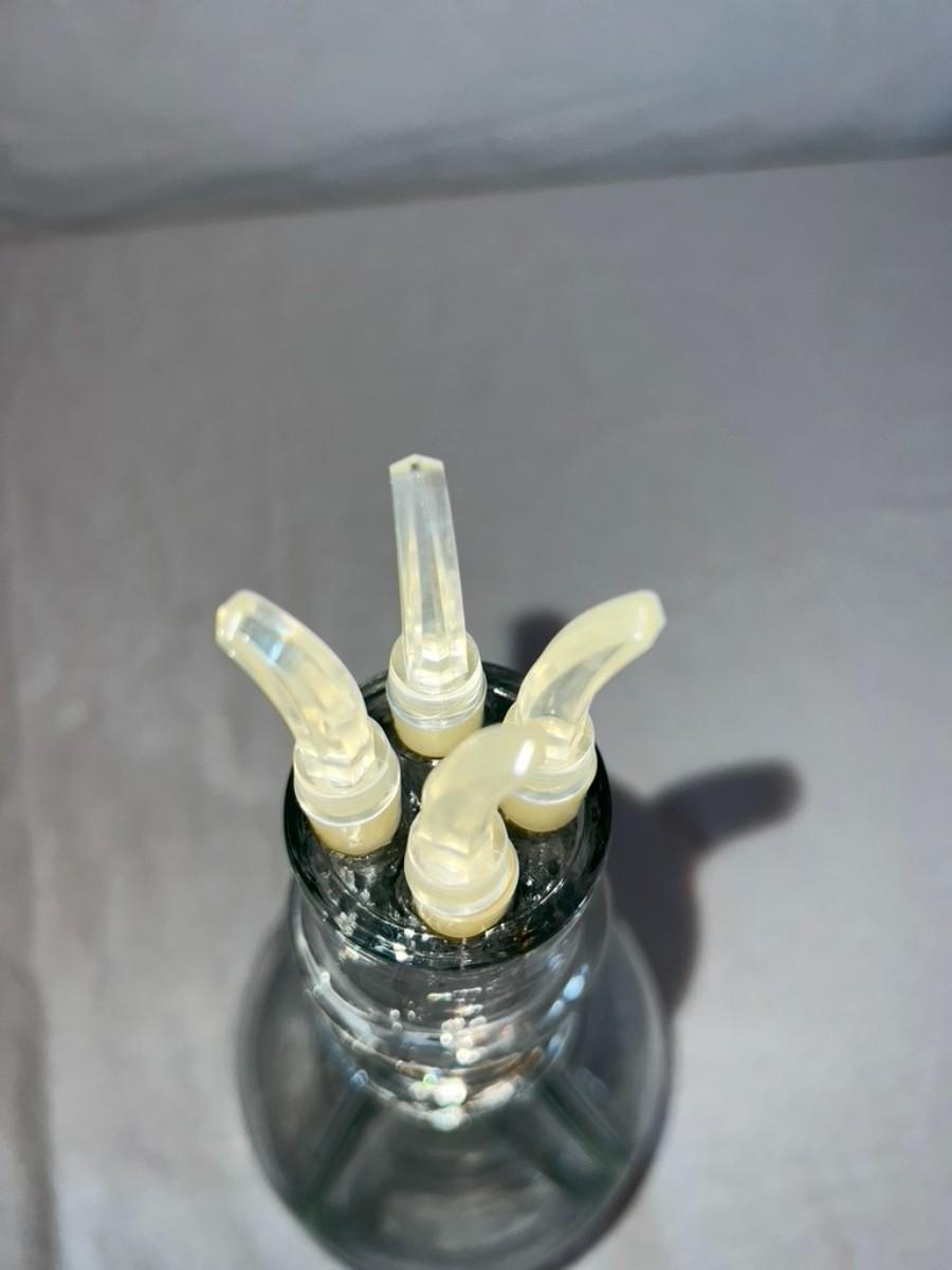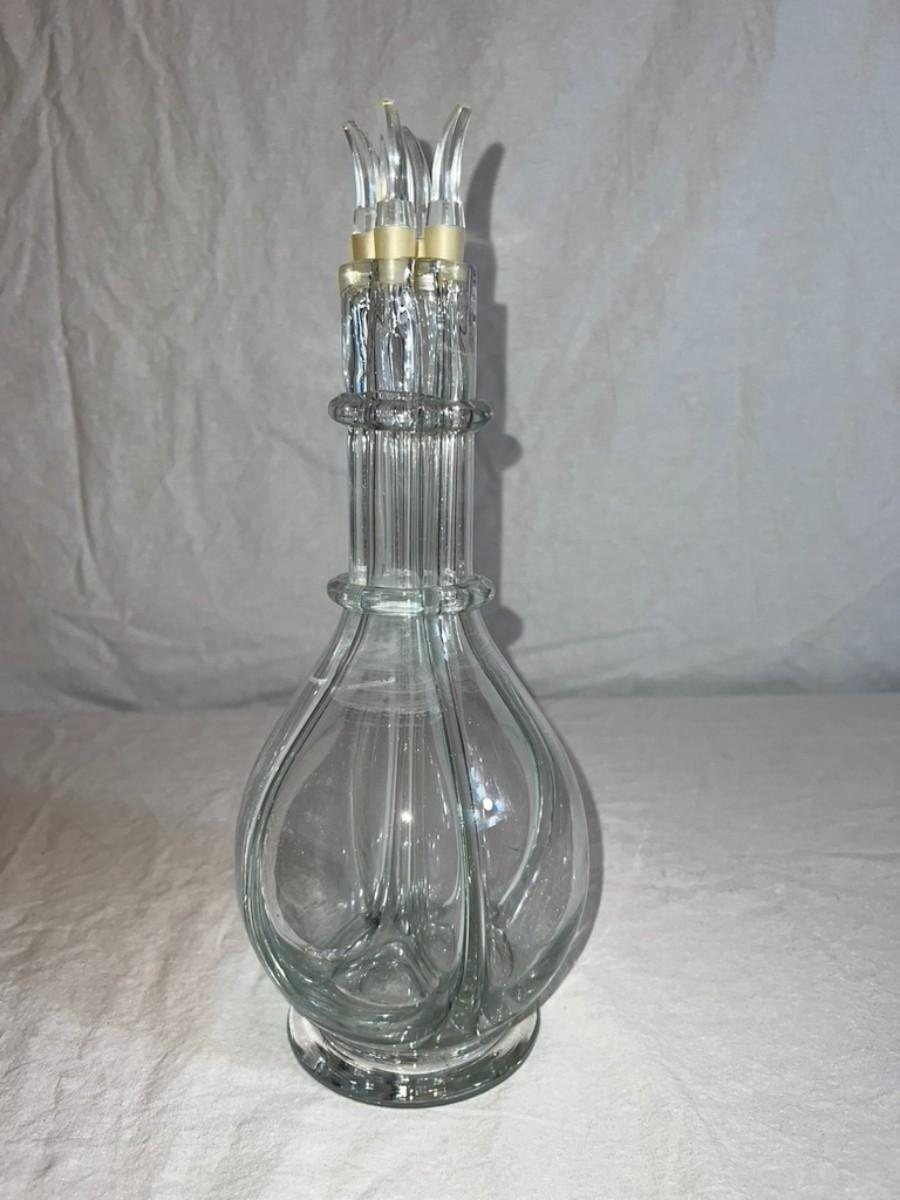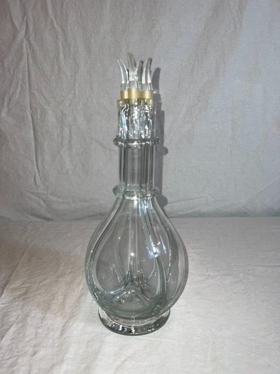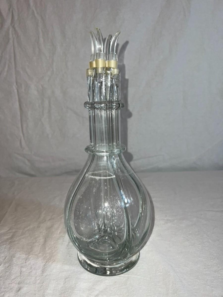 4 Chamber Blown Glass Decanter Liquor Bar Bottle 4 Stoppers France