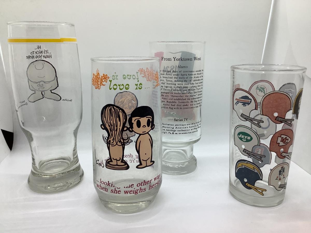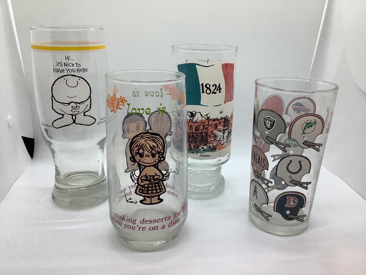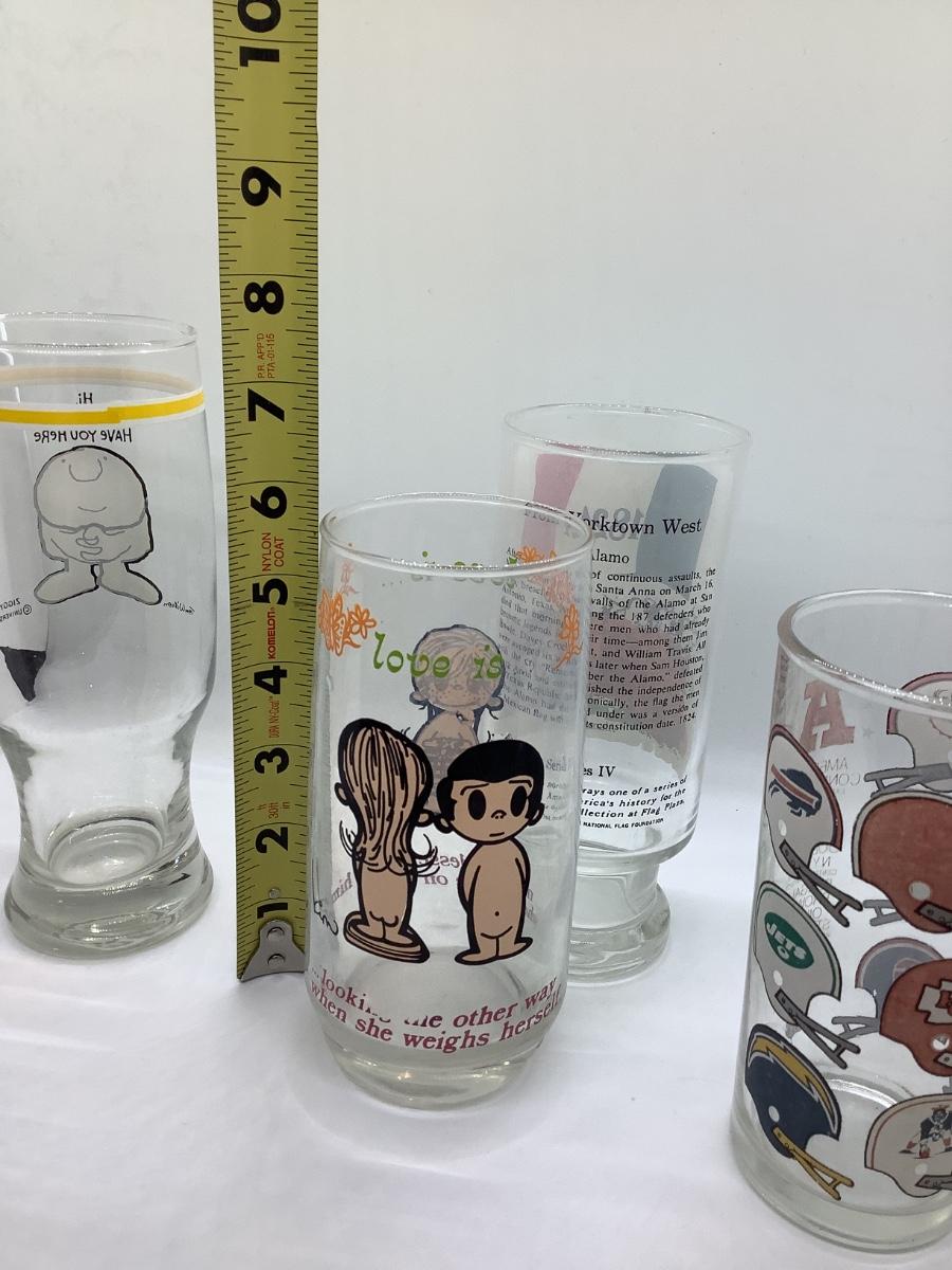 Vintage 4 glasses- Ziggy, Alamo, NFL, Love is