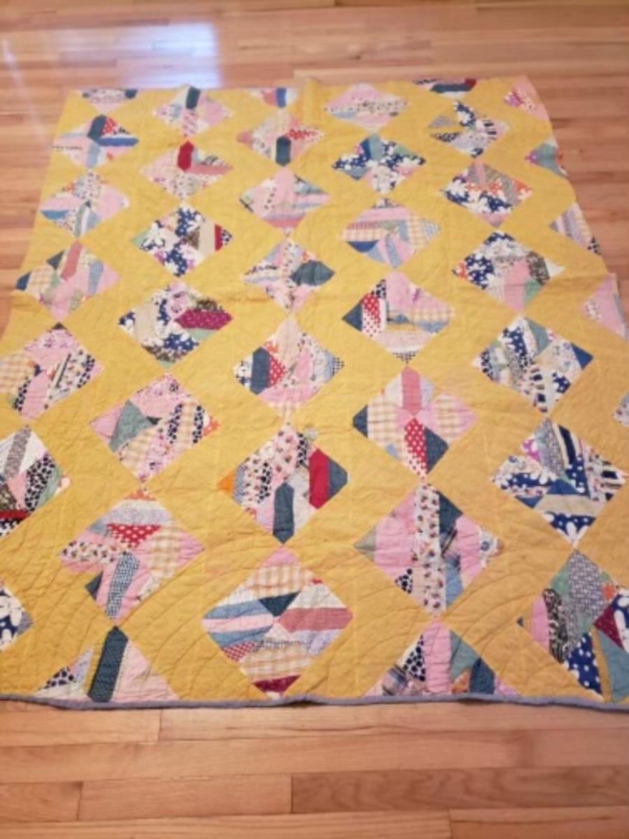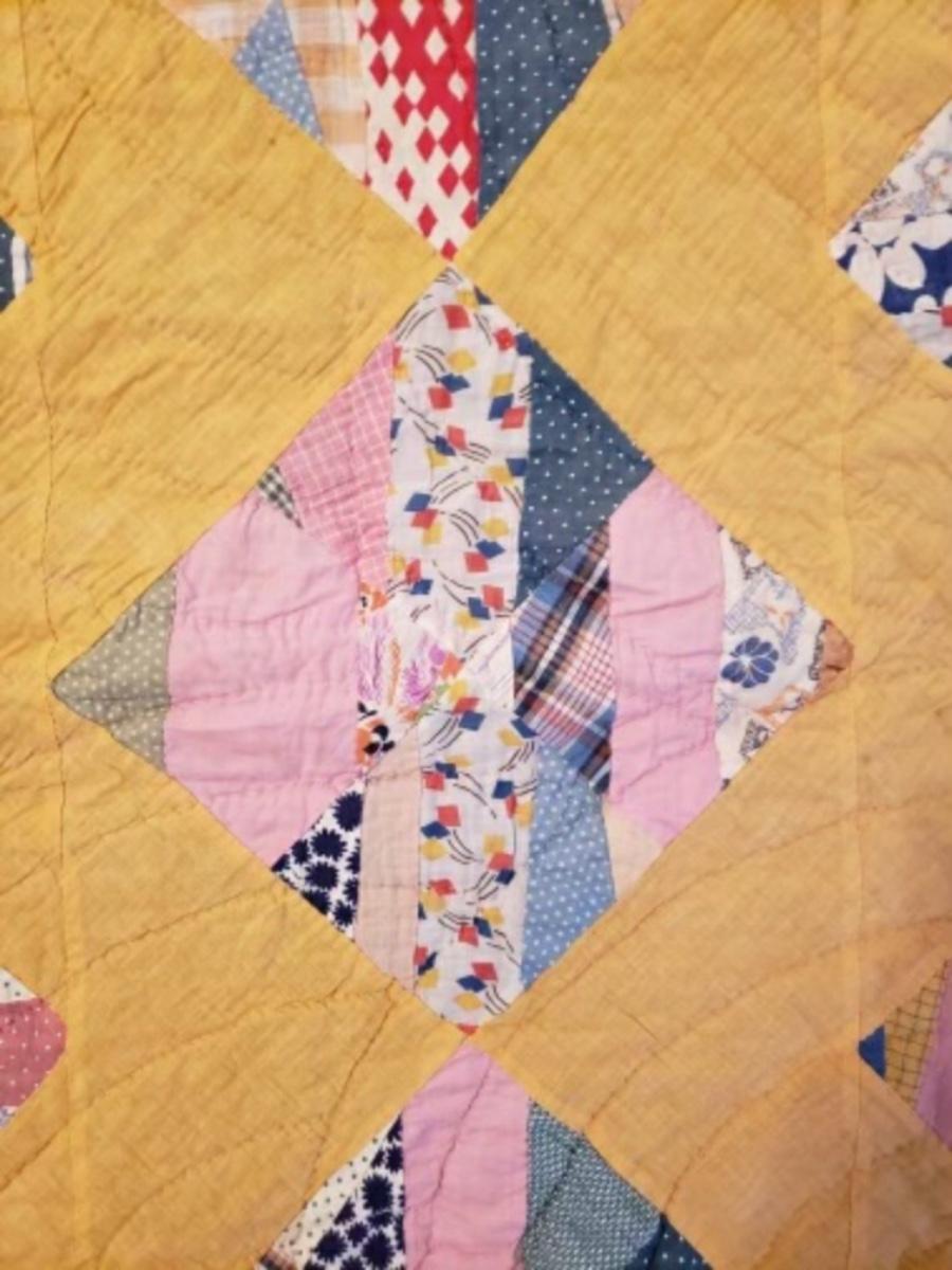 Vintage 4 Patch on Point  handmade quilt. 62 x81