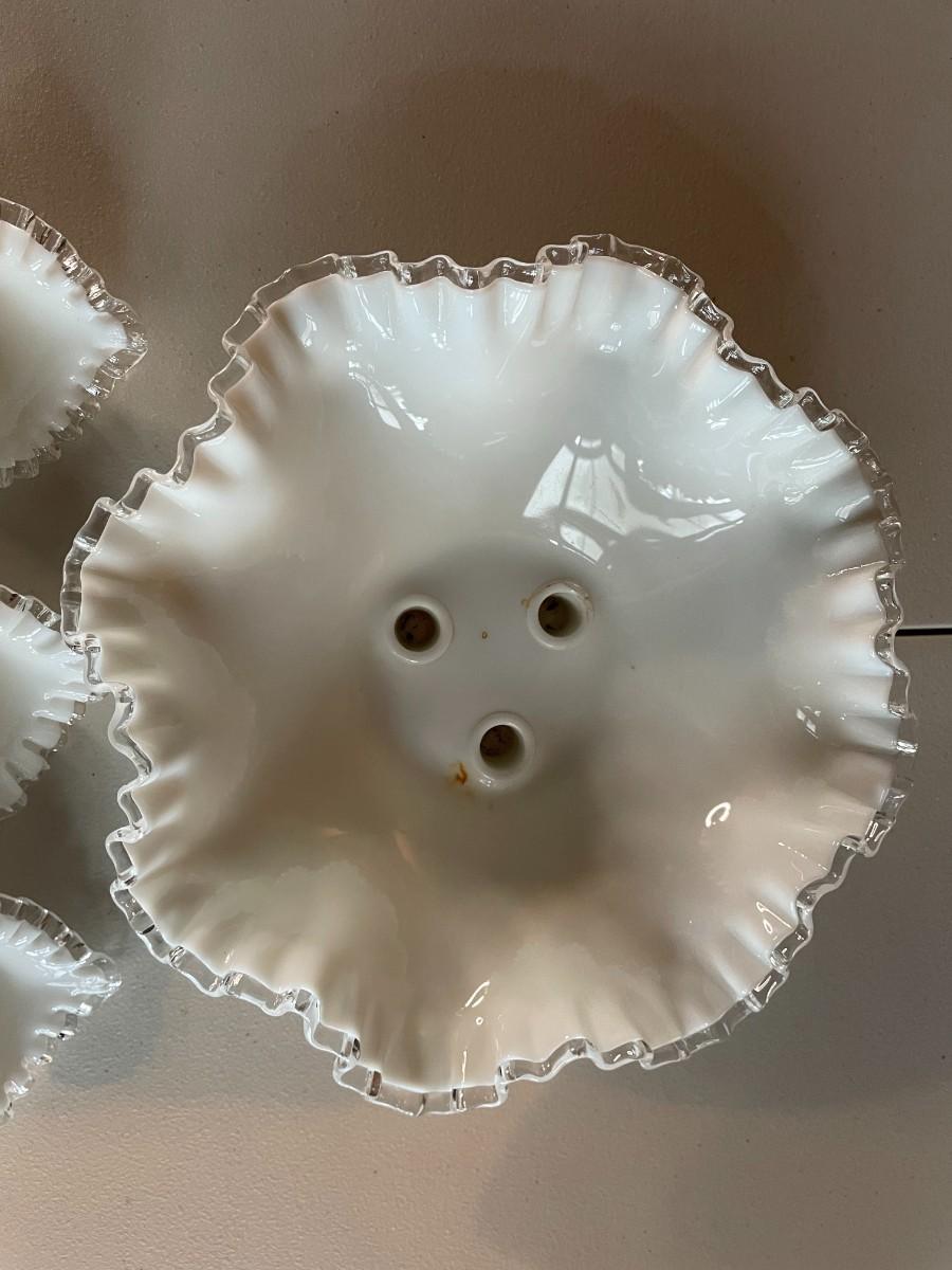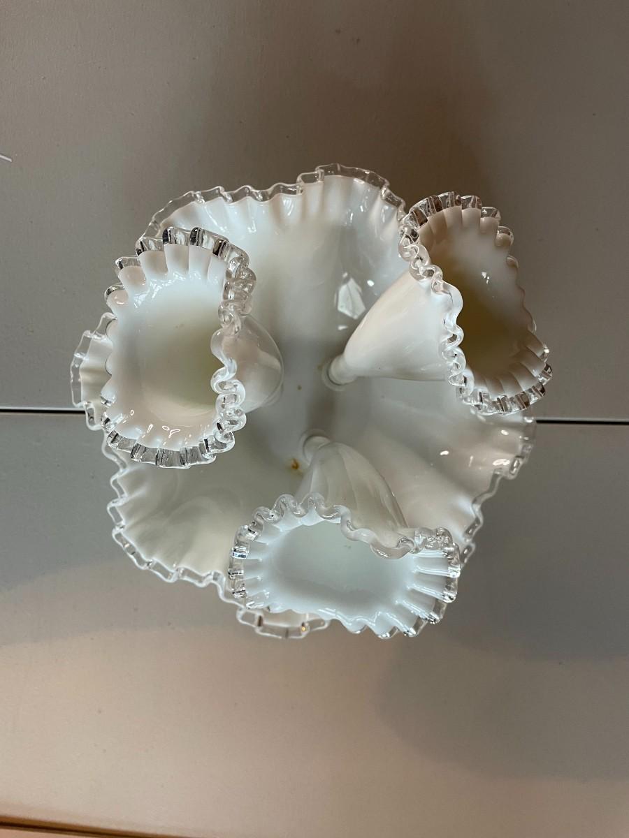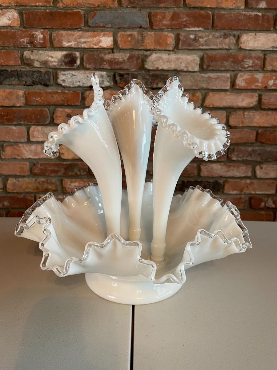 Vintage 4 Piece Fenton White Silver Crest Epergne 3 Horn