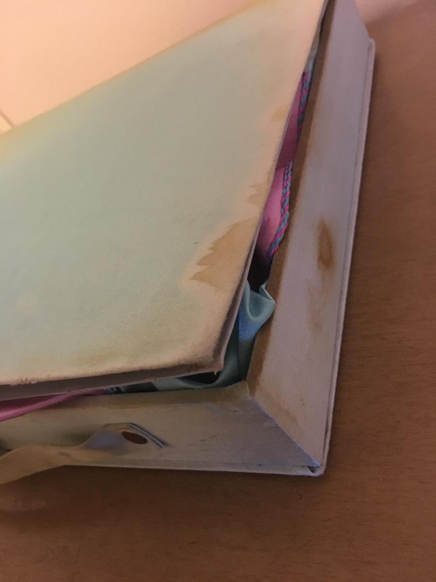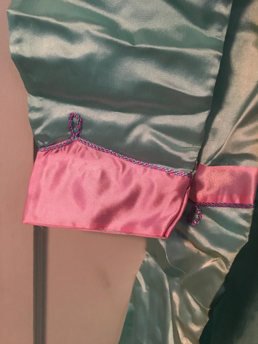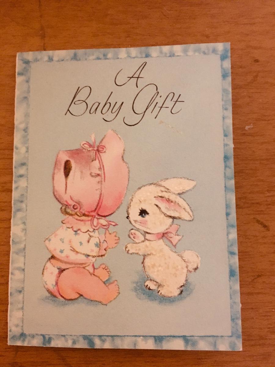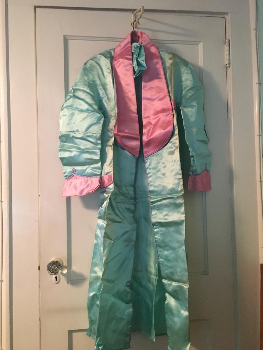 Never worn pj set with slippers and kimono that comes in cloth covered suitcase. Has not been used, but seams have aging that might be able to be laundered. Could have been gift to a new mom. Original gift card. So sweet!