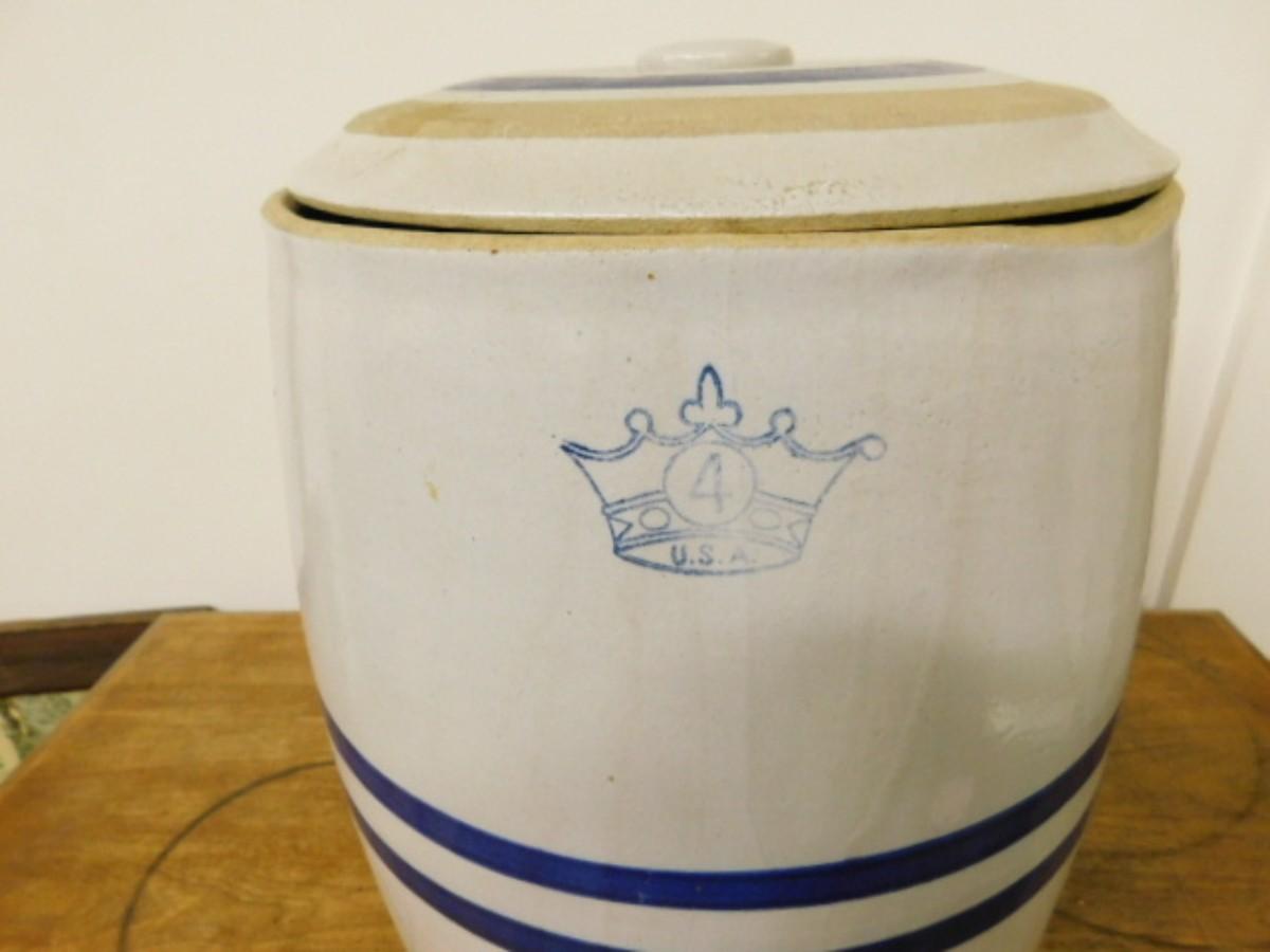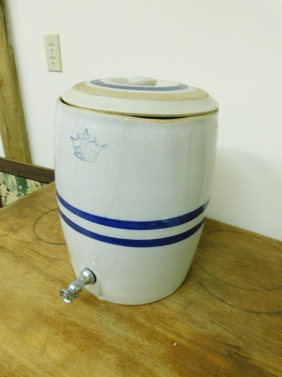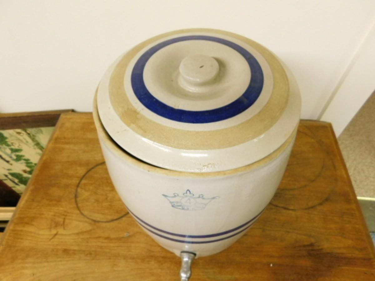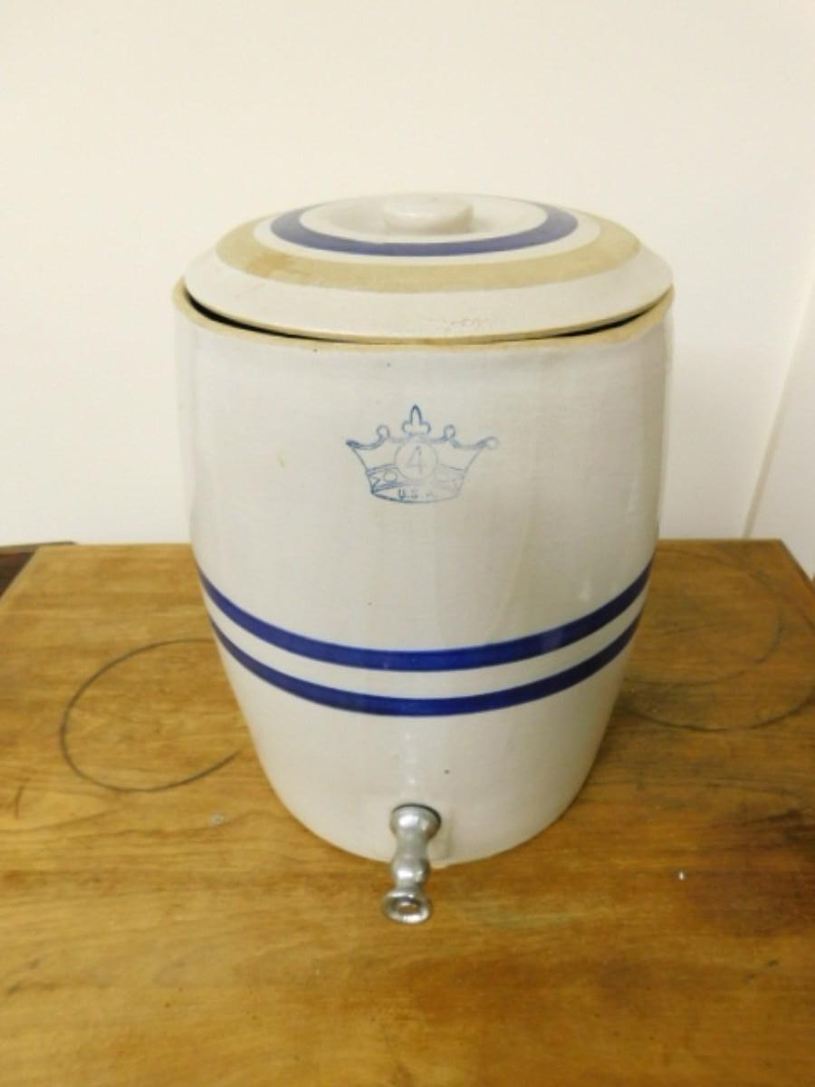 Vintage #4 Robinson Ransbottom Stoneware Water Cooler Blue Stripe