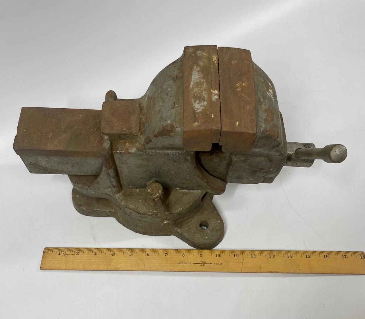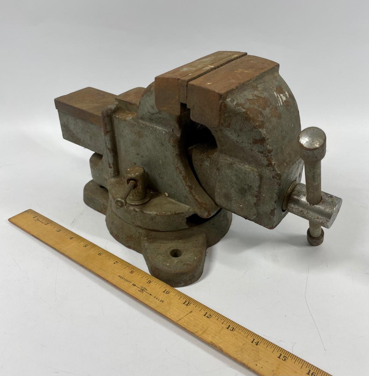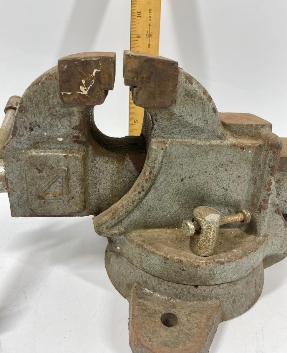Large vintage #4 bench top vise. Some minor surface rust but in good working condition.