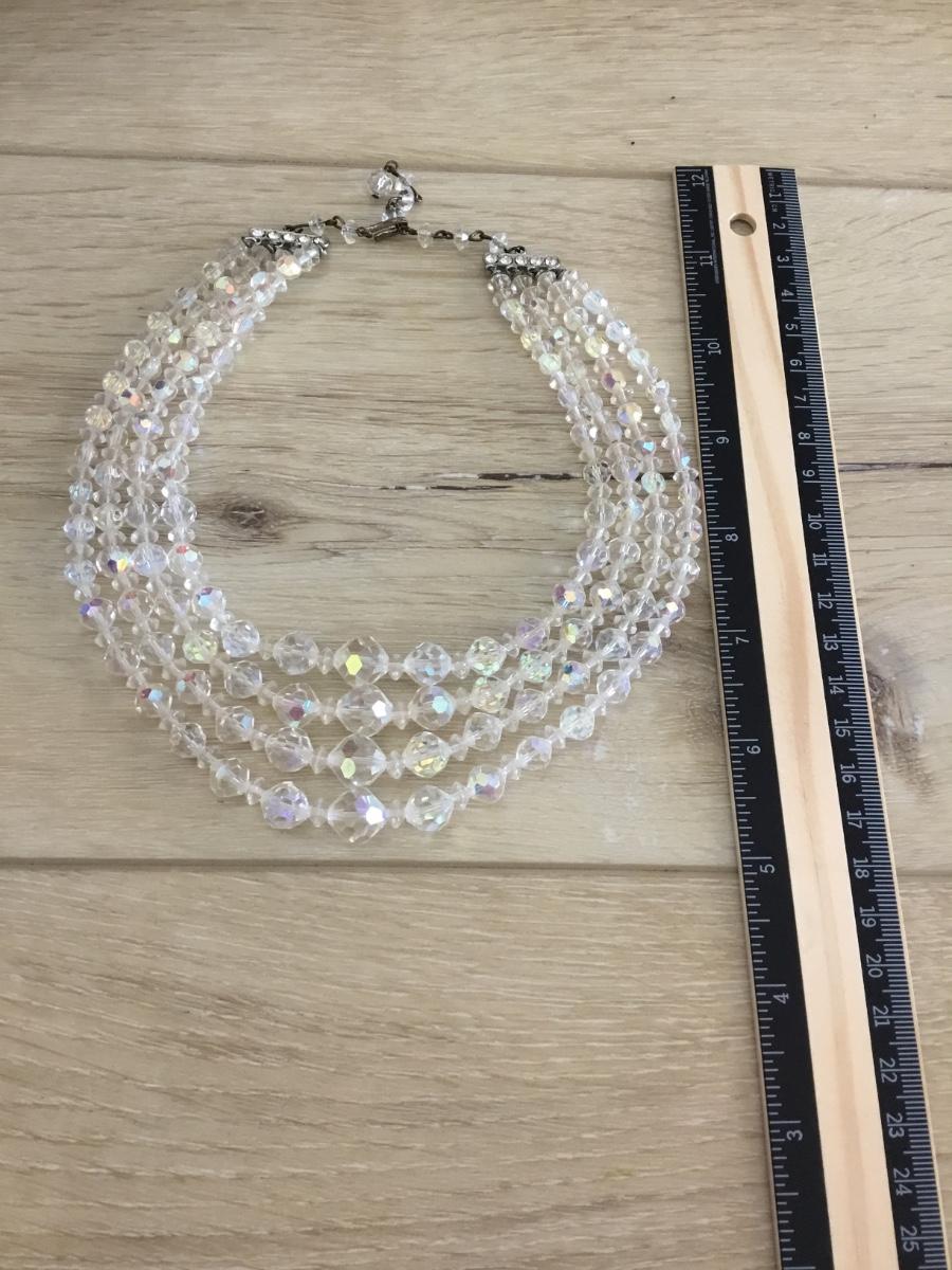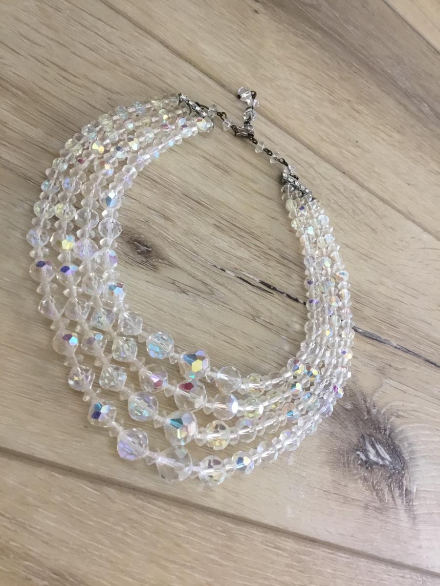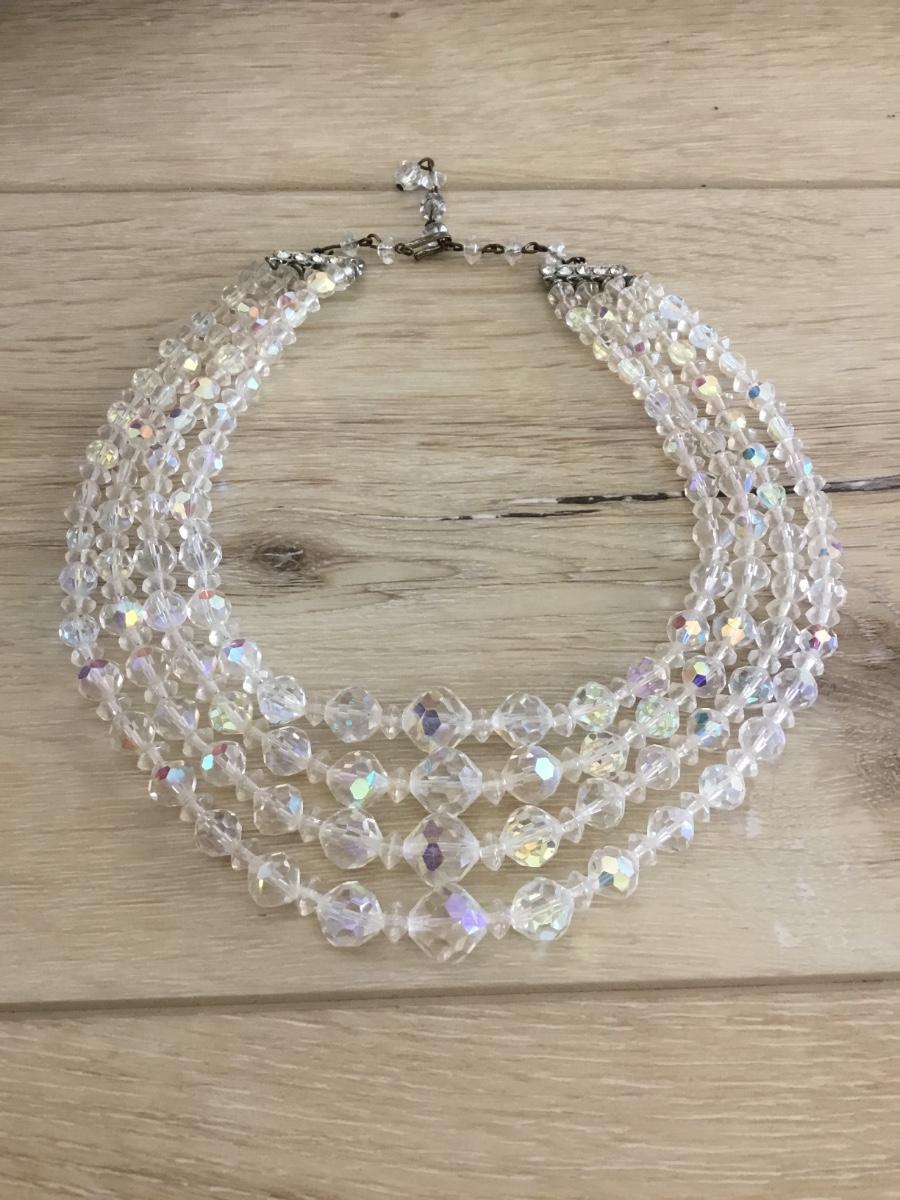 Vintage 4 Strand Aurora Borealis crystal necklace