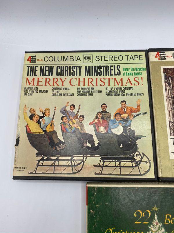 3 vintage 4 track reel to reel Christmas holiday music. Untested.
