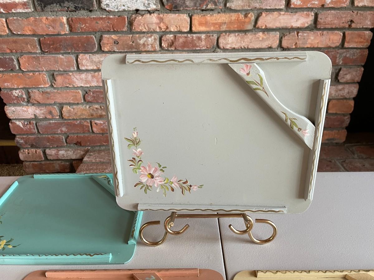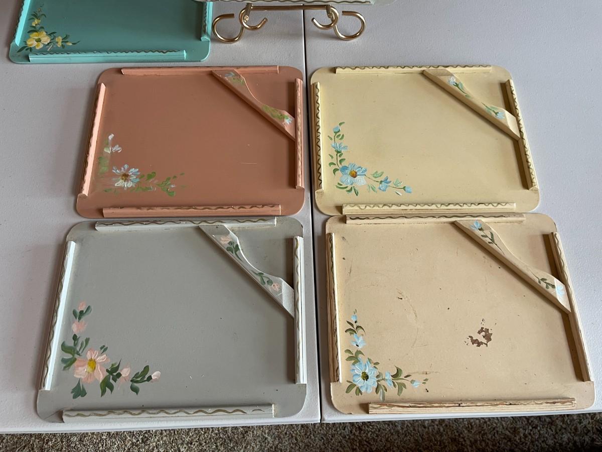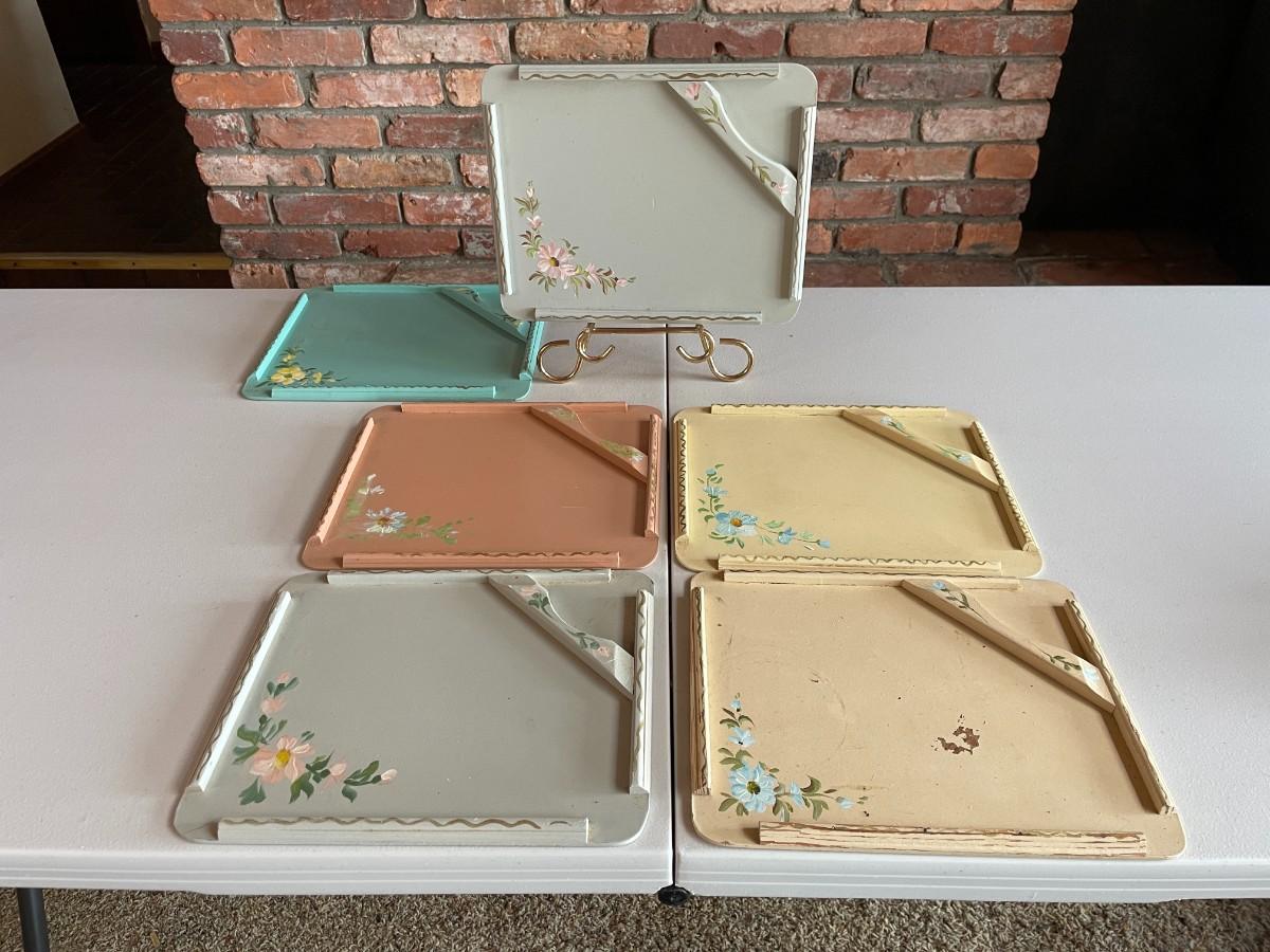 6 Beautiful hand pained trays. Trays: 12L x 9 1/2W