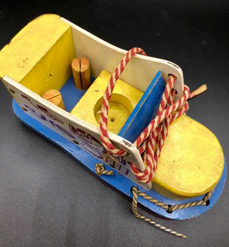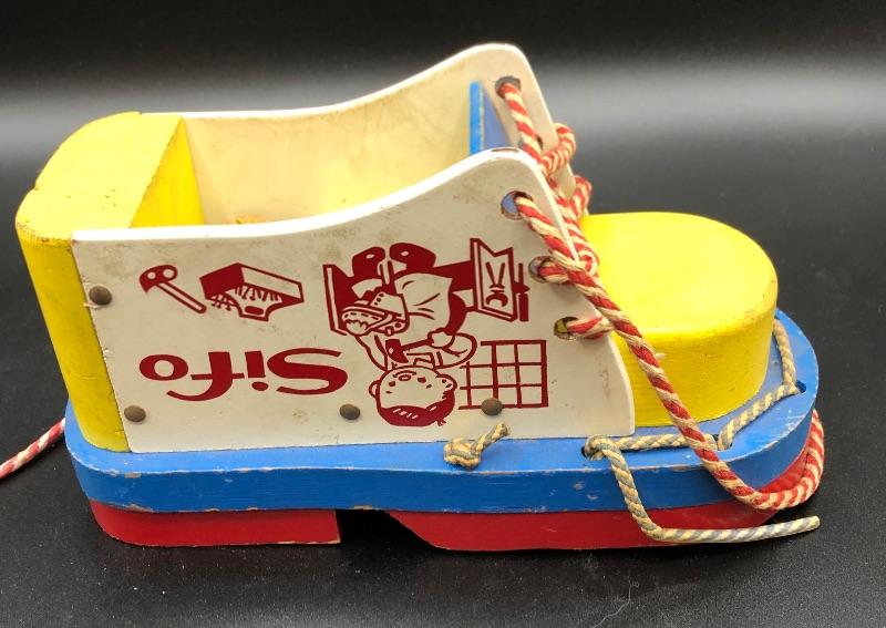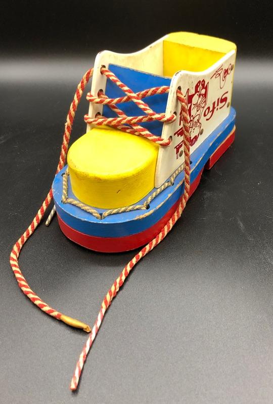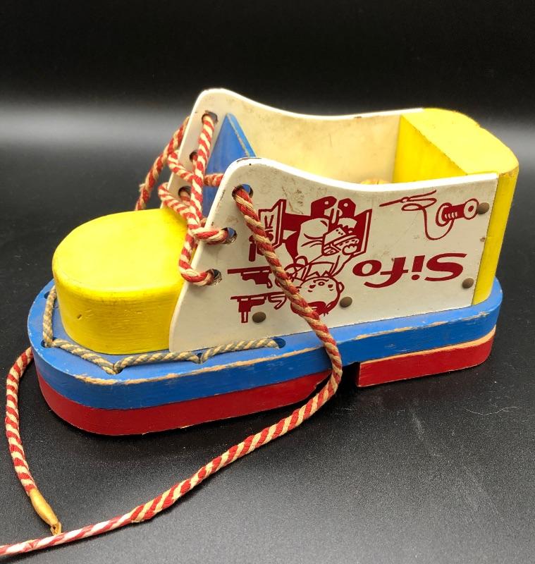 Vintage Toy Shoe for practicing lace tying, lace threading, and wood peg pounding (no hammer)