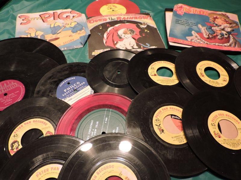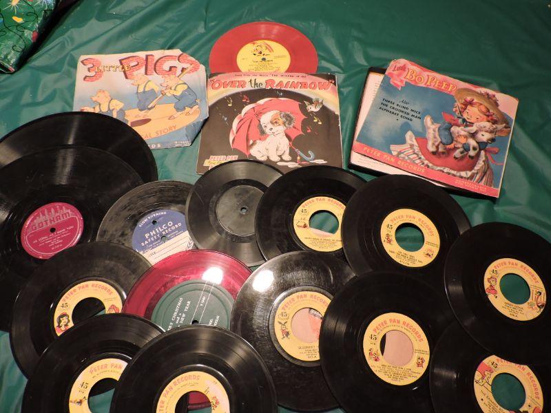 Collection of Peter Pan Records children's 45's from the 1950's. **Please read Terms and Conditions before placing a bid. Pick up is Sunday, September 15, 2019 from 11am to 4pm and Tuesday, September 17 from 4pm-7pm in Sicklerville. All sales are final. All sales are as is, where is. Please review all photos. Any props included in photos are not included in listing. All measurements are approximate.