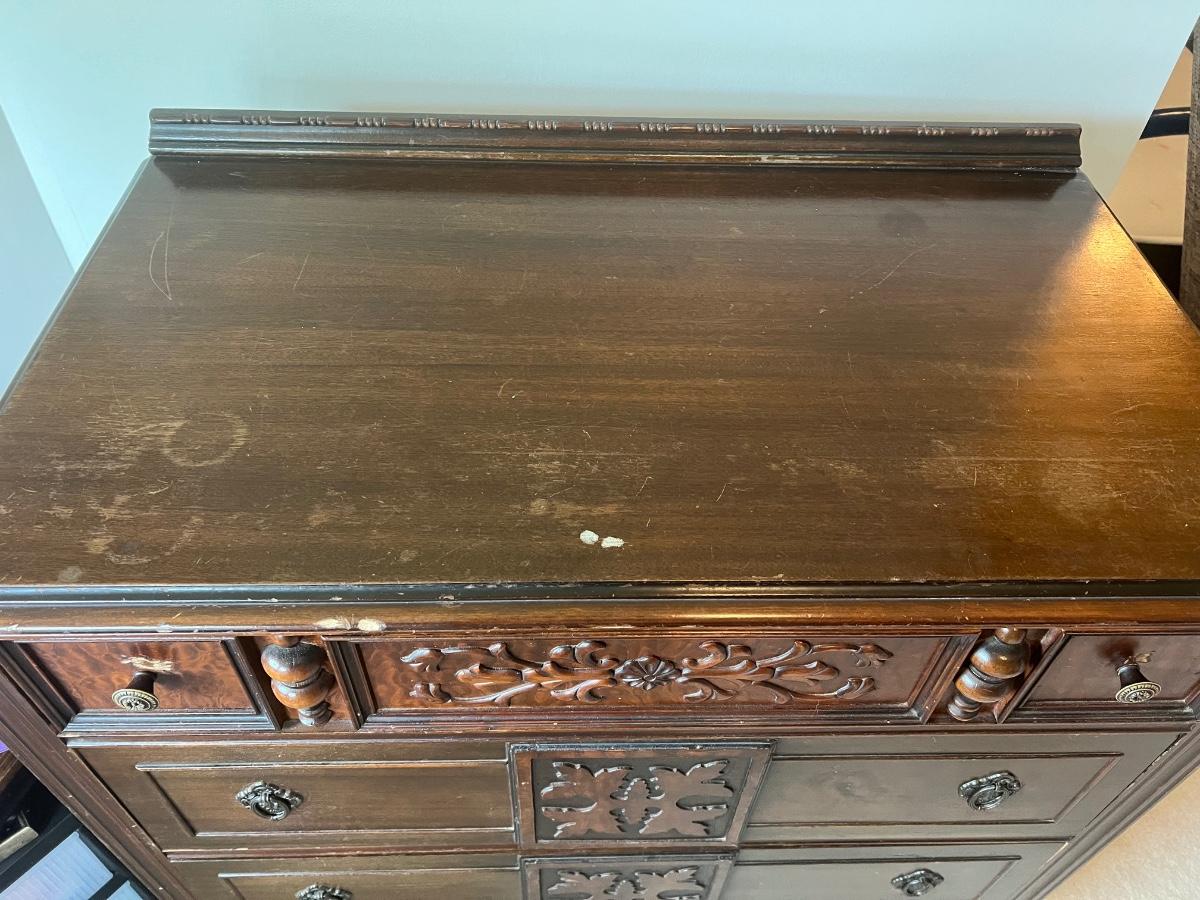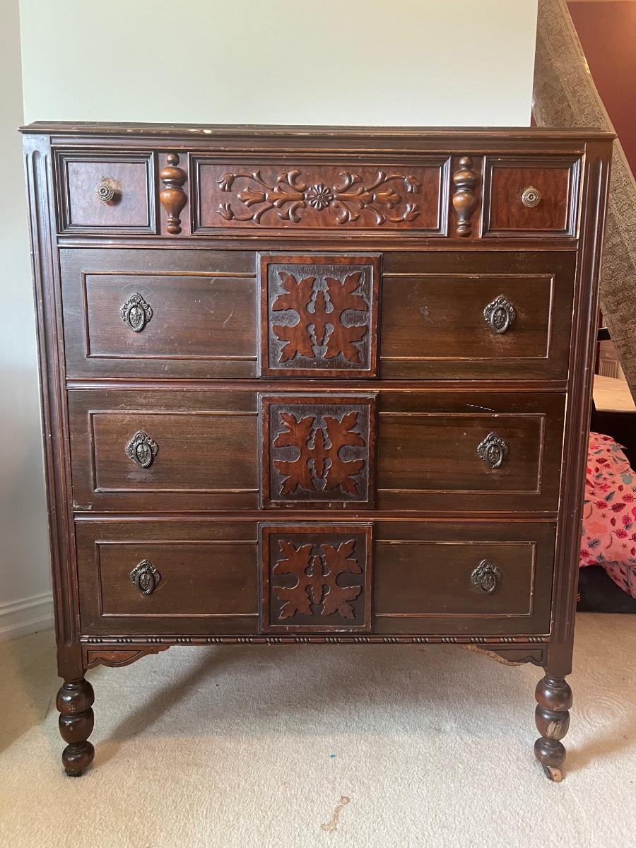 Vintage 4-drawer Chest of Drawers Dresser with Leaf Accents