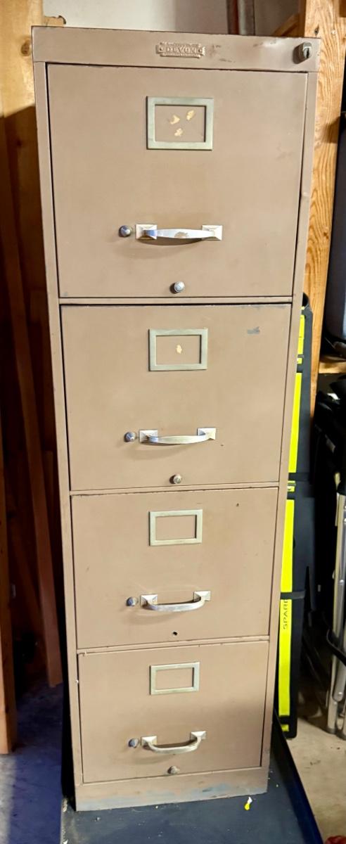 Painted office beige, made by W.H. Harper Co. of Santa Monica. Good used condition, no damage or rust.