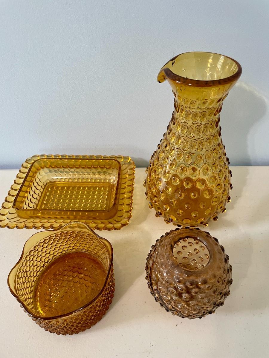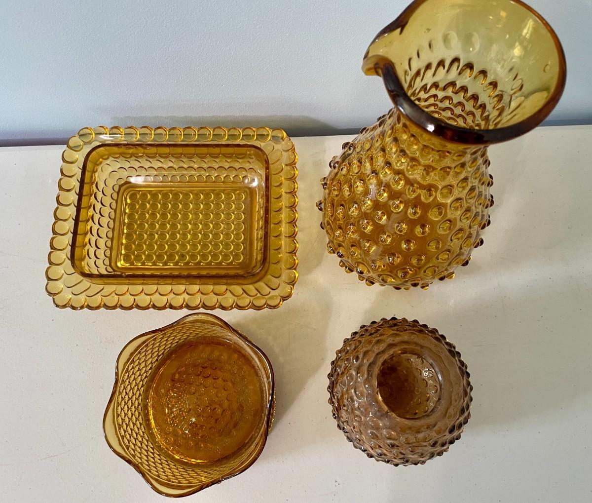 Vintage 4pc lot of amber hobnail glass