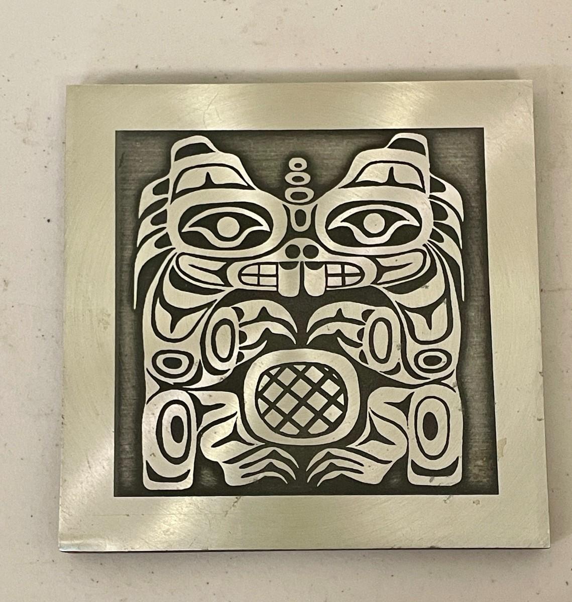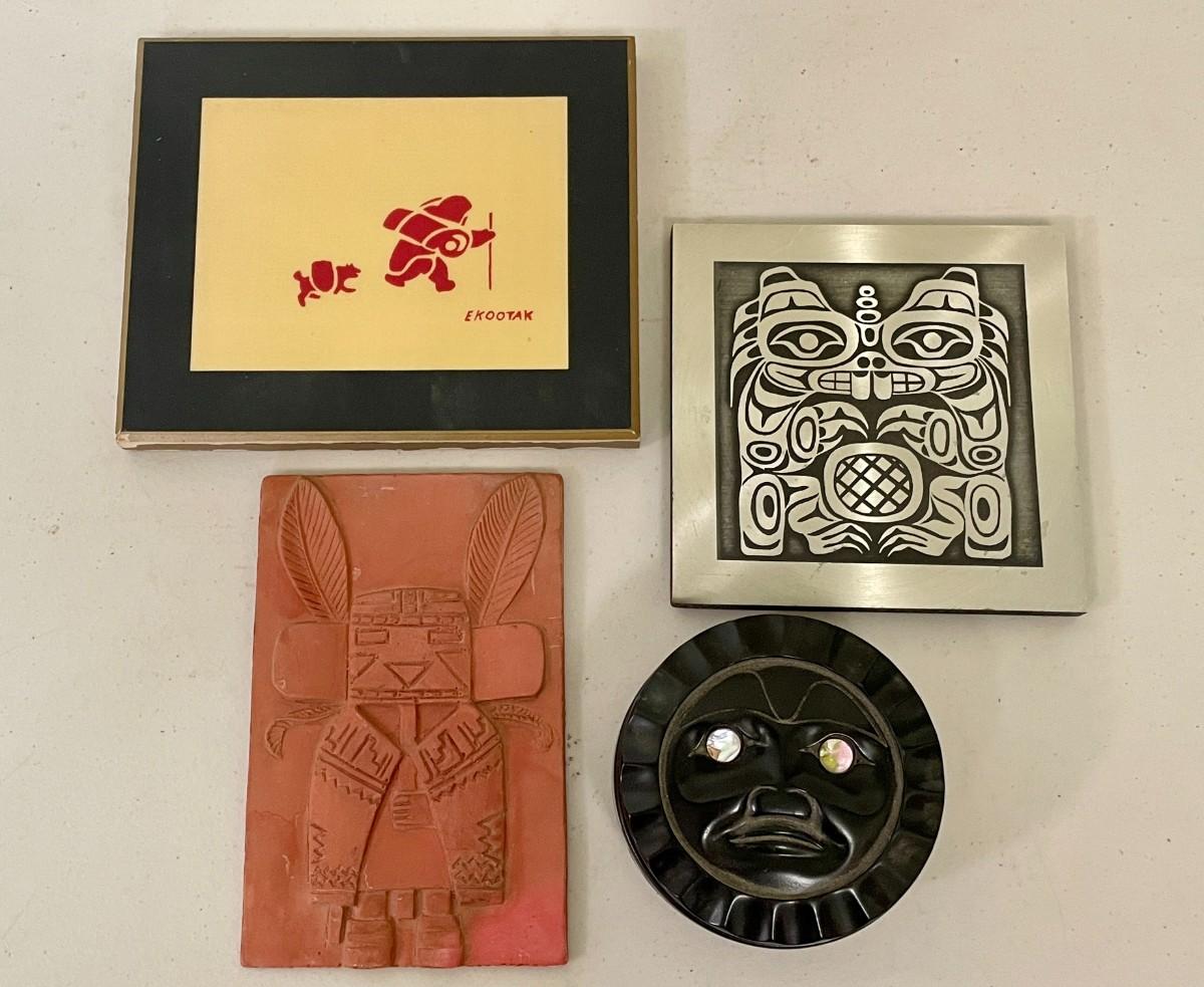 Includes Ekootak laminated print, terracotta Kachina, metal beaver trivet and carved box.