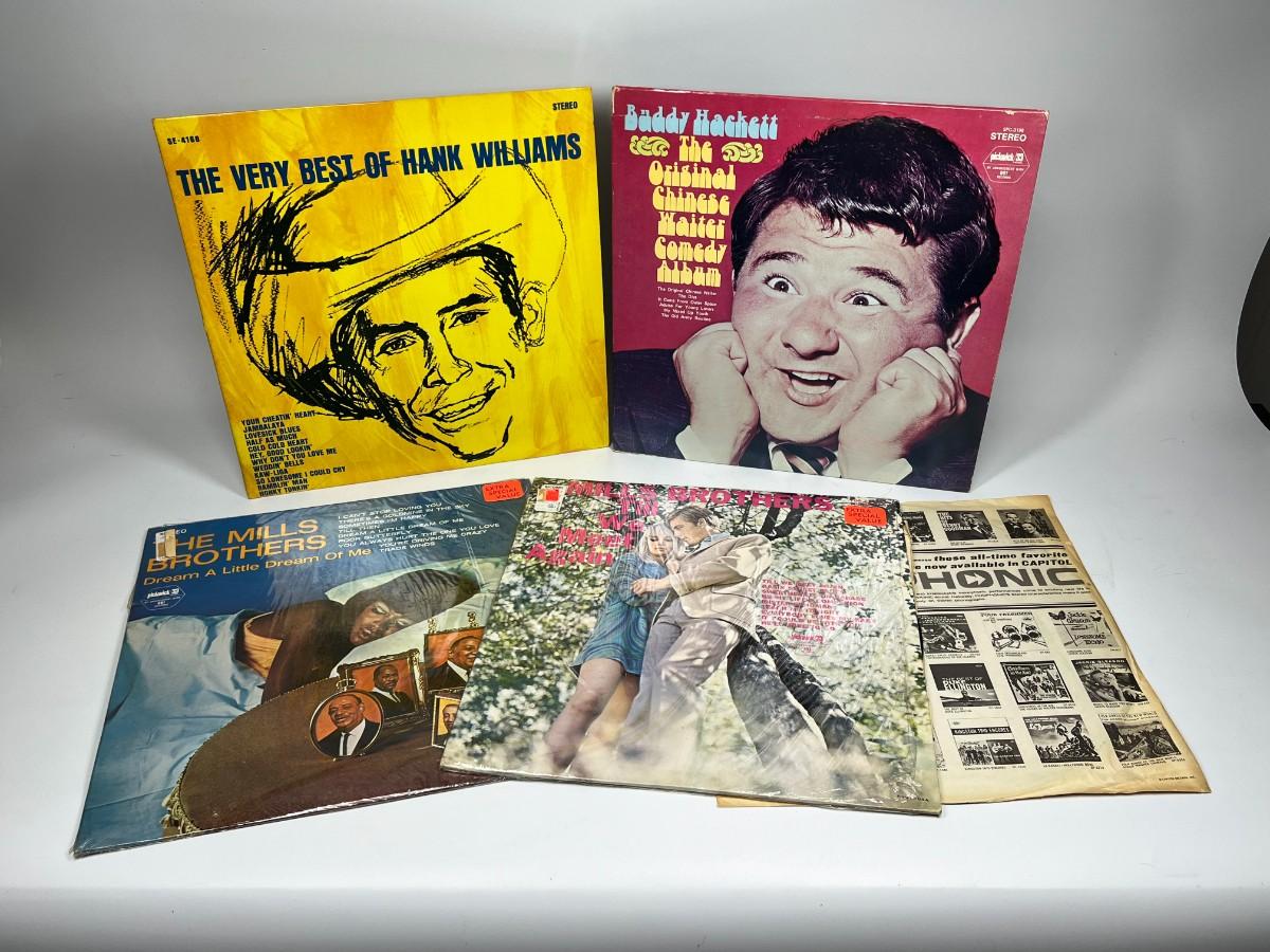 Vintage 5 Album Lot Hank Williams Mills Brothers Buddy Hackett