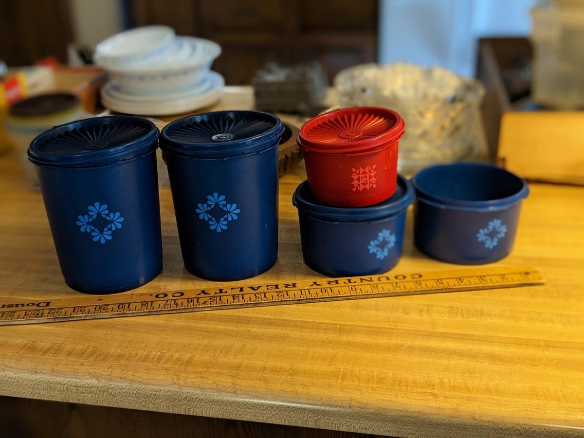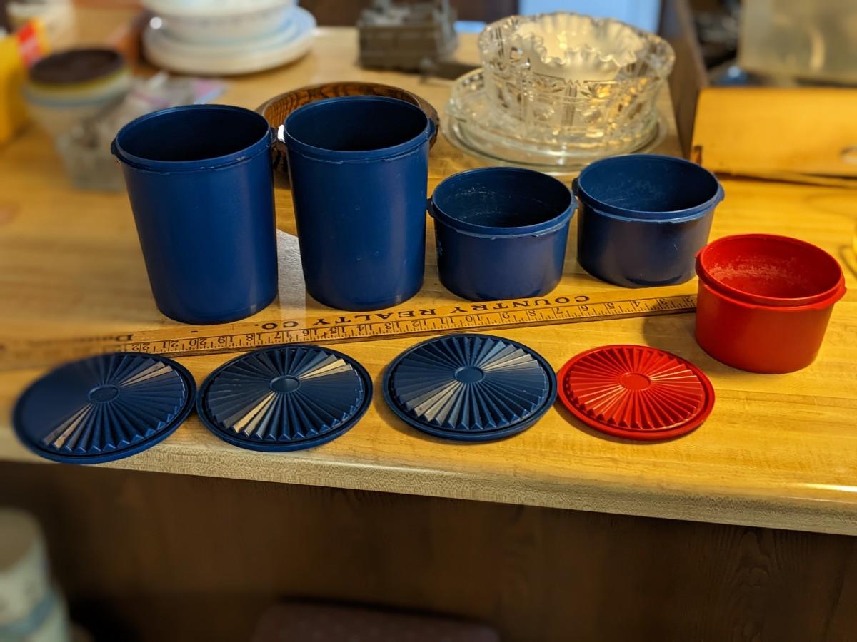 Vintage 5 Rare Blue Tupperware Canisters