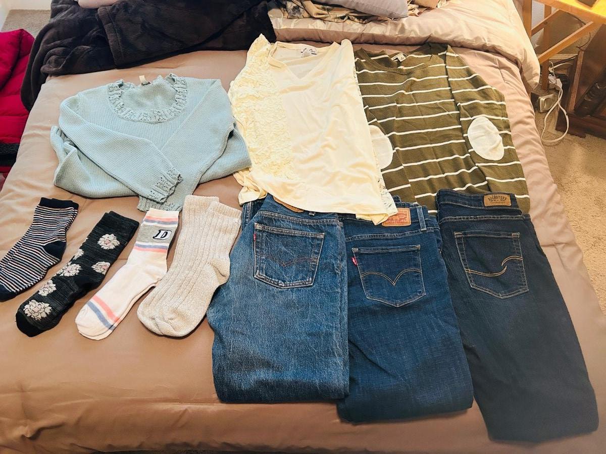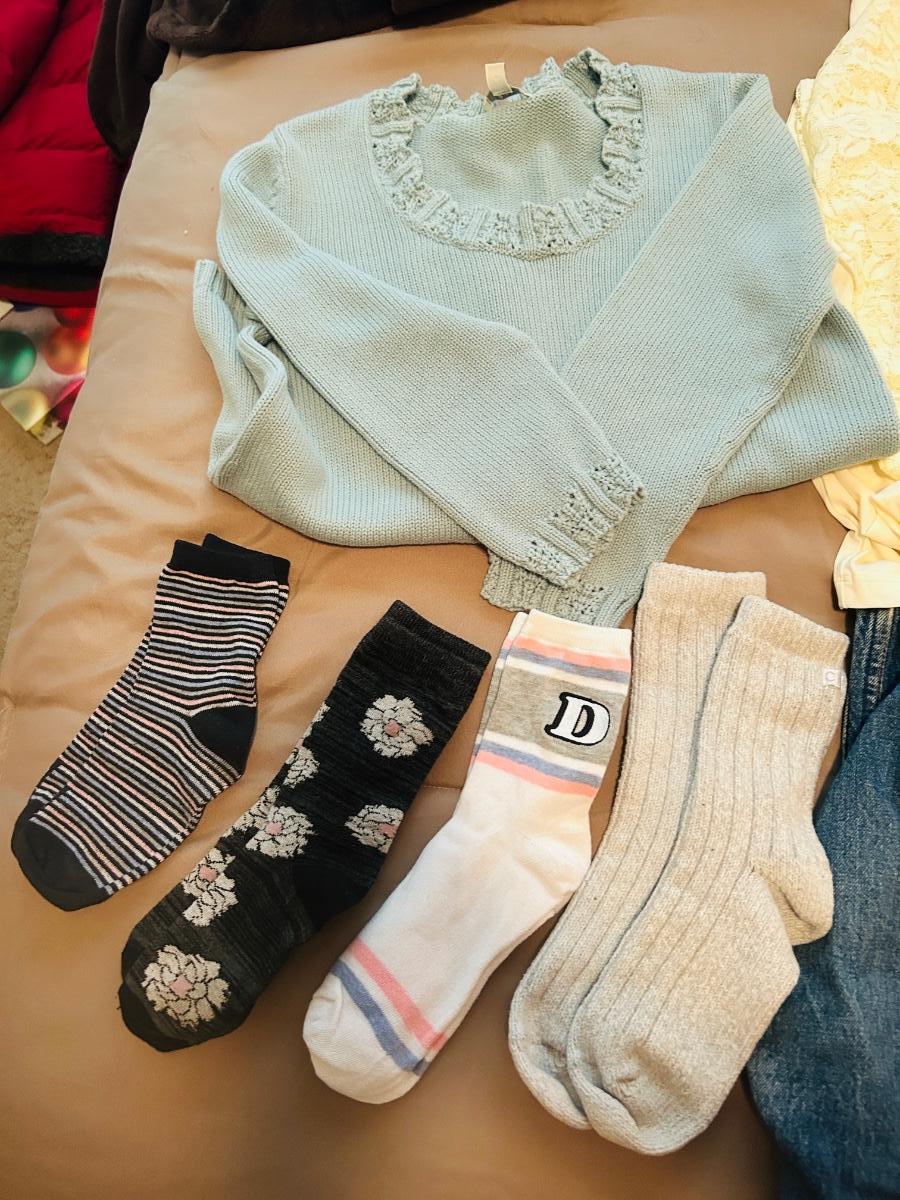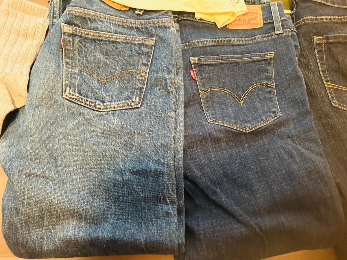 A PAIR OF VINTAGE 501 JEANS (30x31) LIKE NEW JEANS, LADIES SHIRTS AND SOCKS