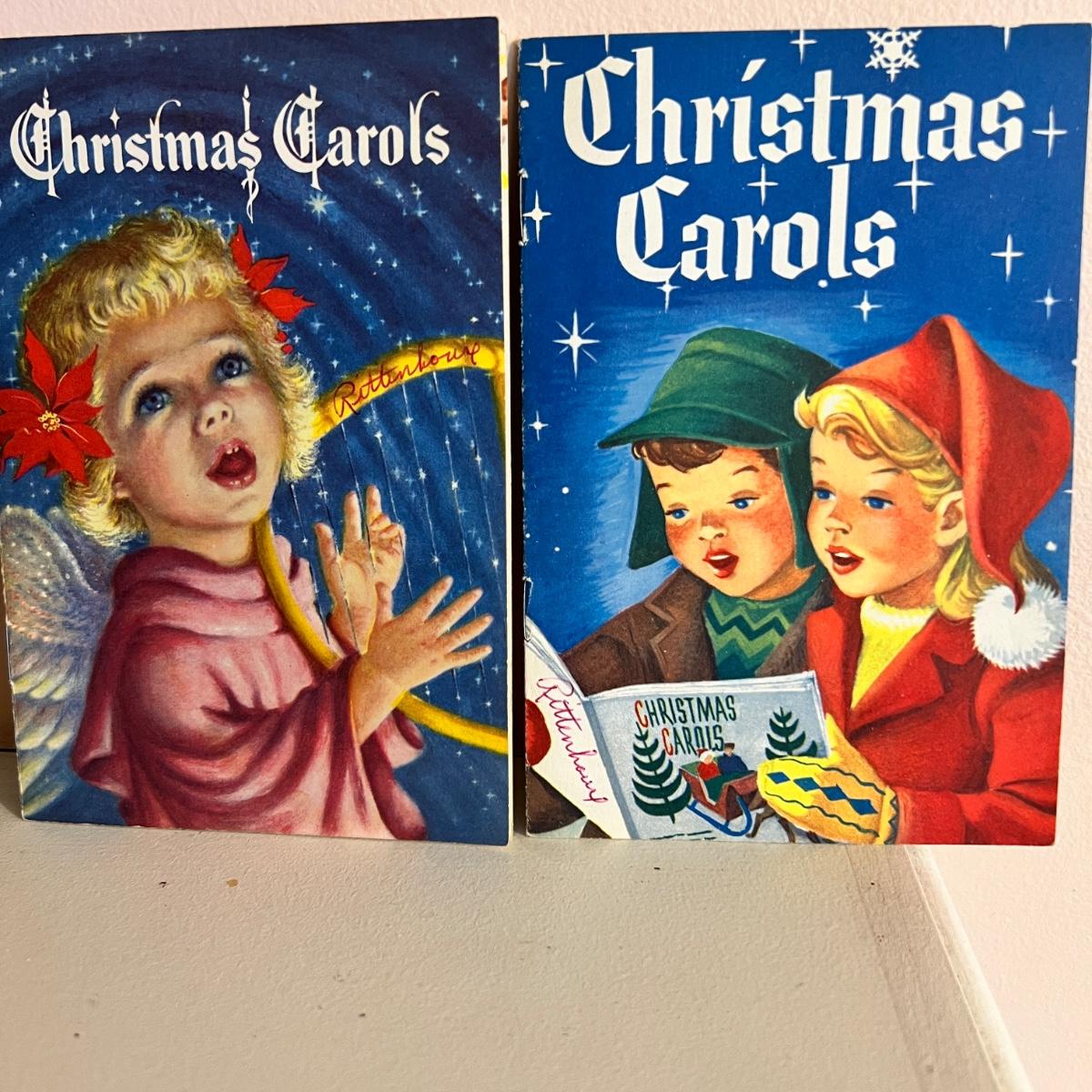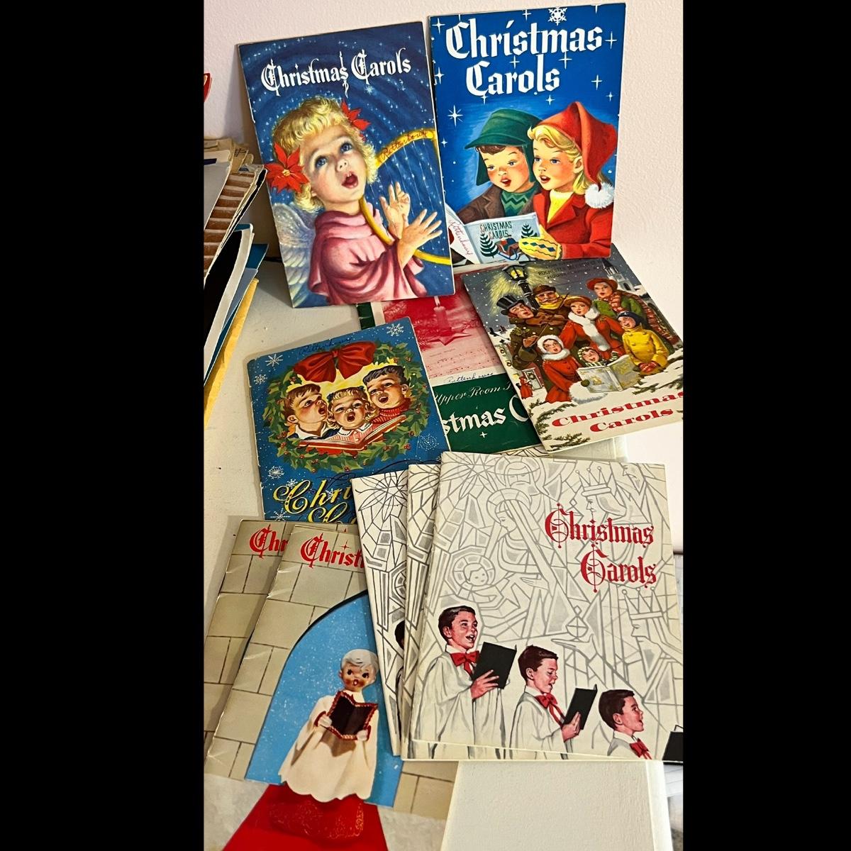 10 small Christmas carol books from the 1950's printed handed out by banks and insurance agencies. Graphics are awesome!
