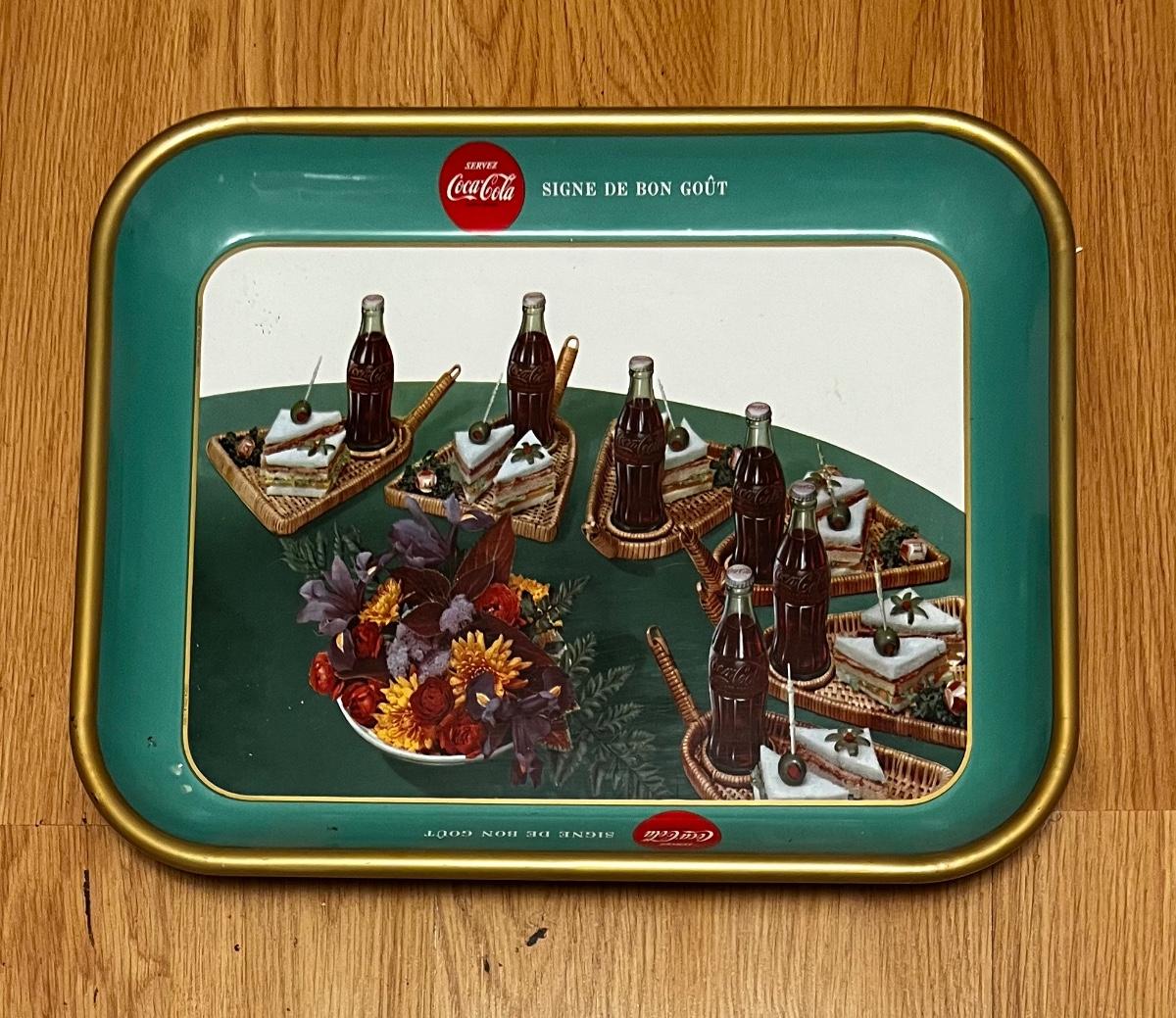 Vintage 50s Coca Cola Tray Sandwich Snack Theme Green Border