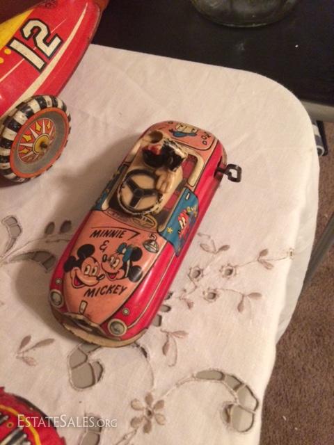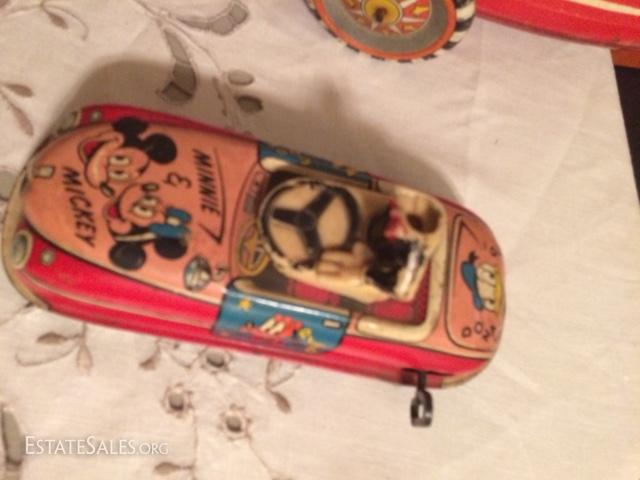 VINTAGE 50's MARX DISNEY MICKEY MOUSE TIN WINDUP TOY CAR WITH DRIVER WORKS! GRE