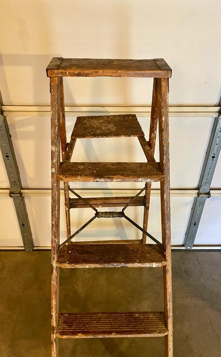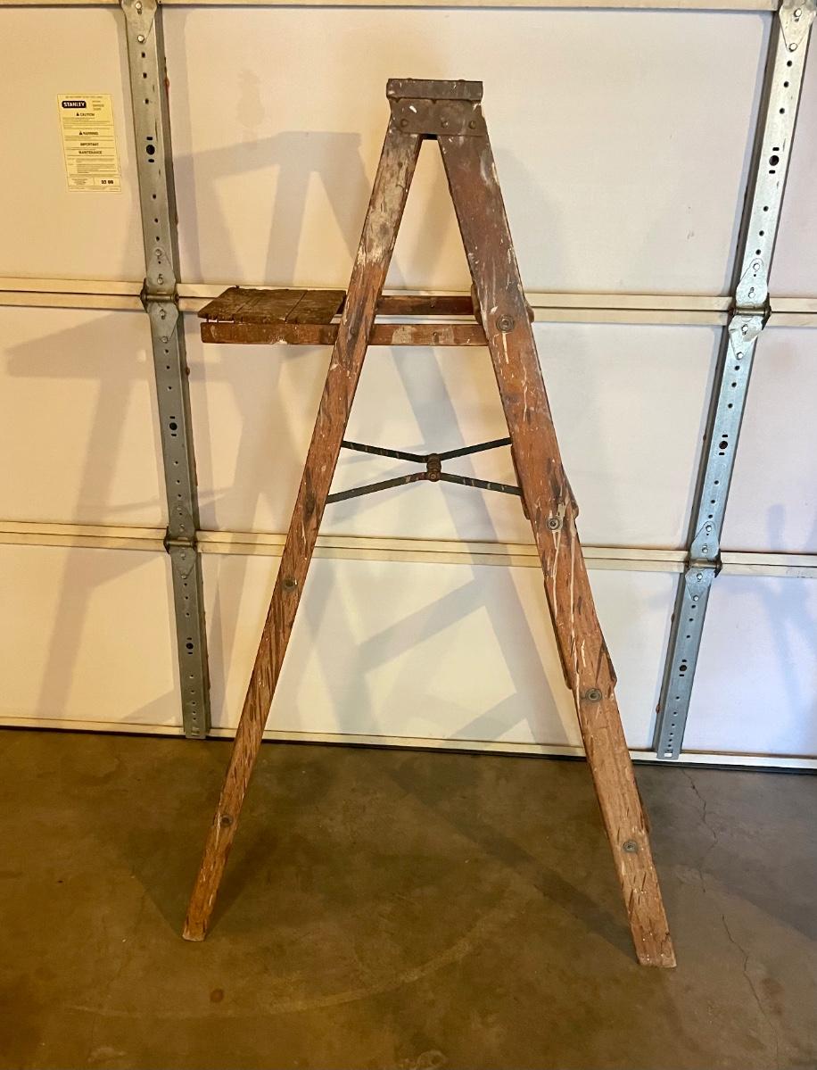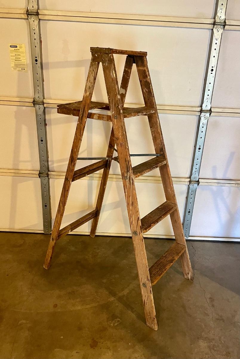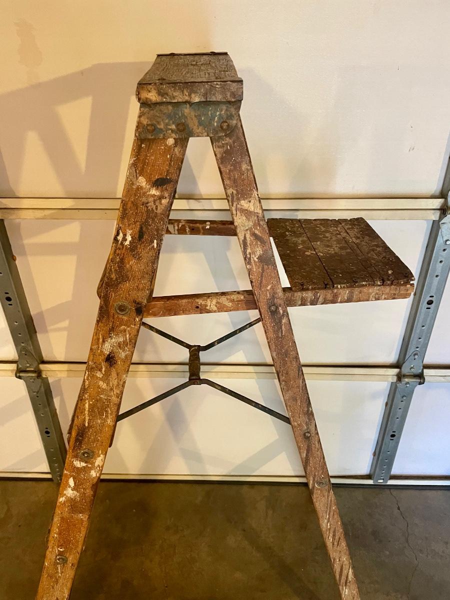 Vintage 5-Foot Wood Step Ladder. Lots of paint drips.