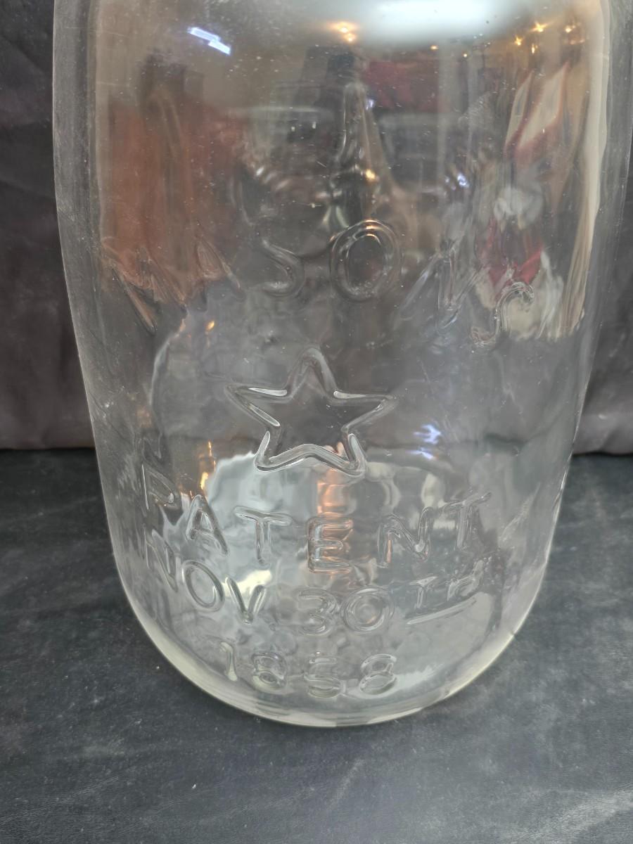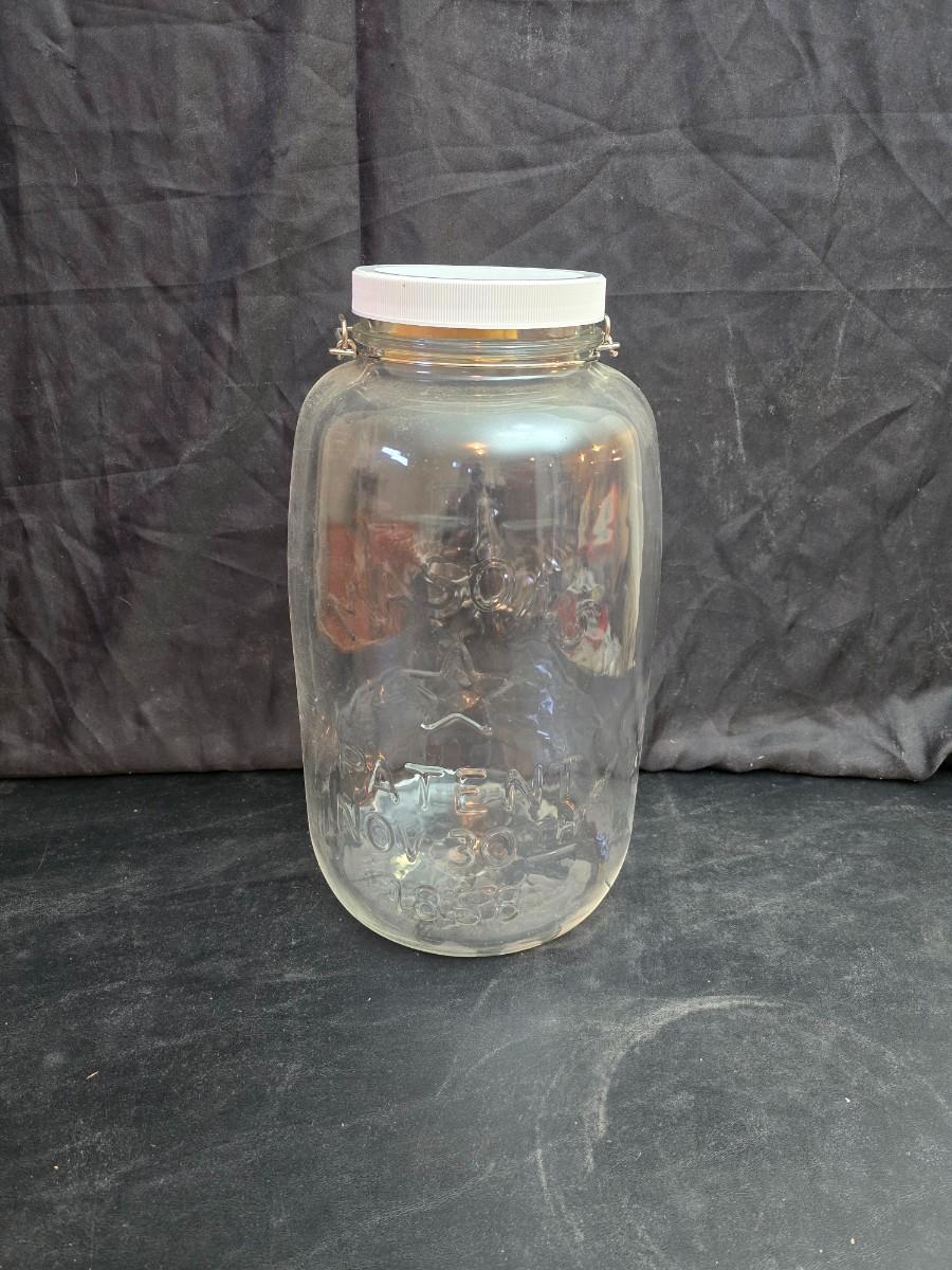 Vintage 5-gallon Mason's Patent Nov 30th 1858 "Star and Eagle" glass pickle jar.