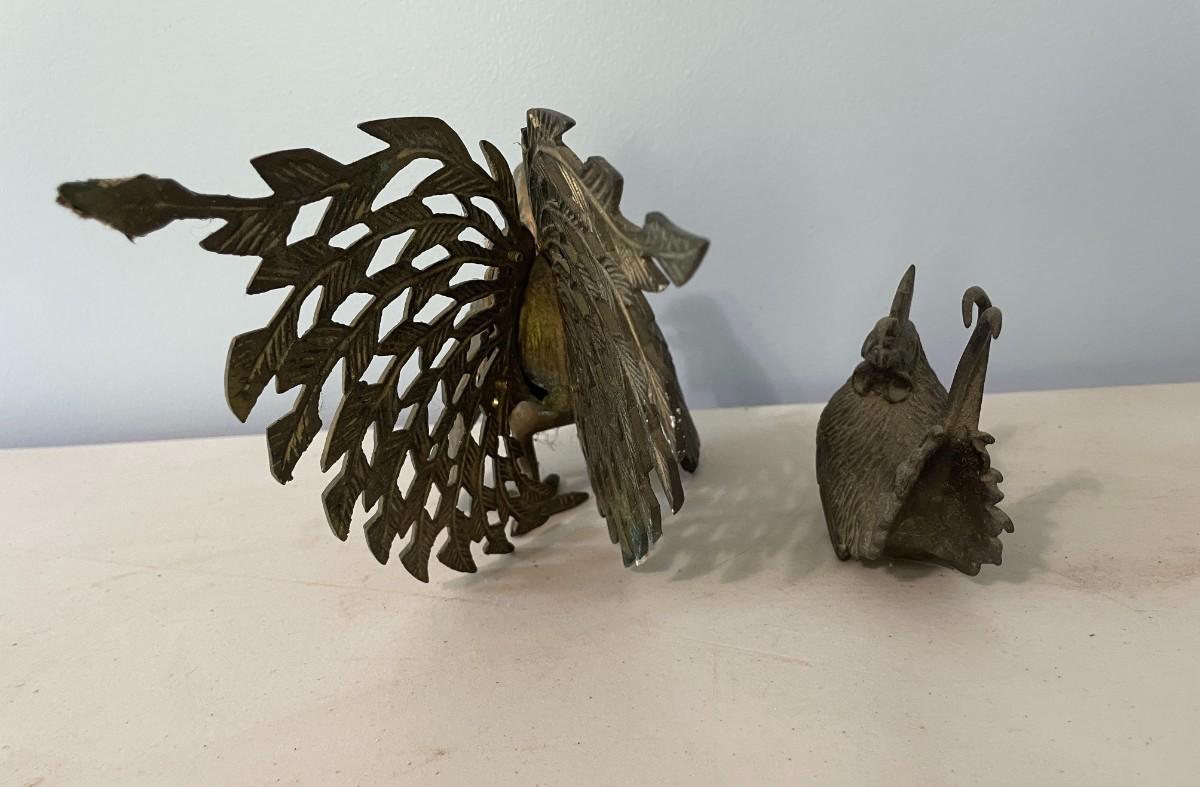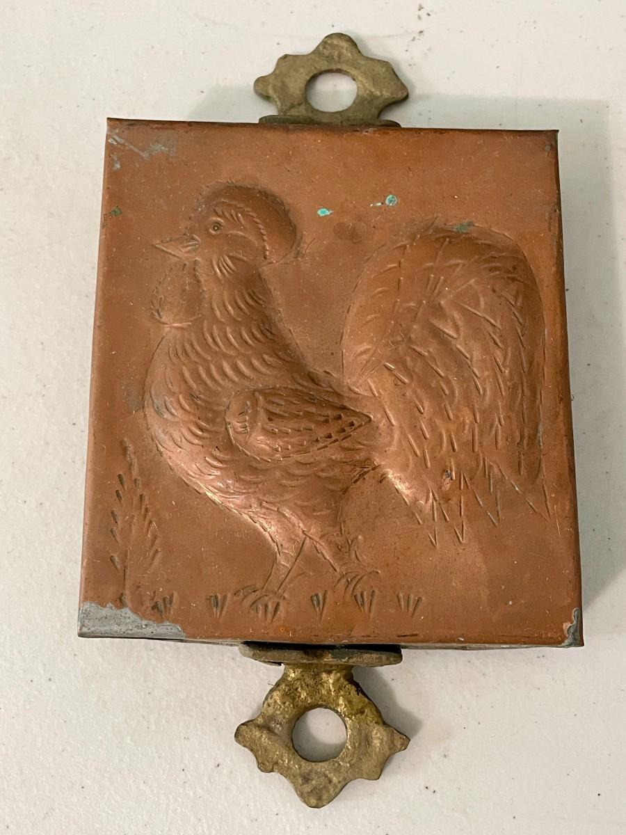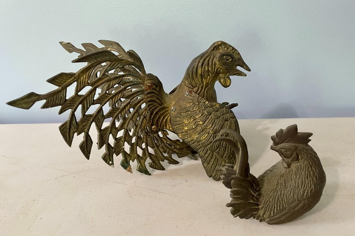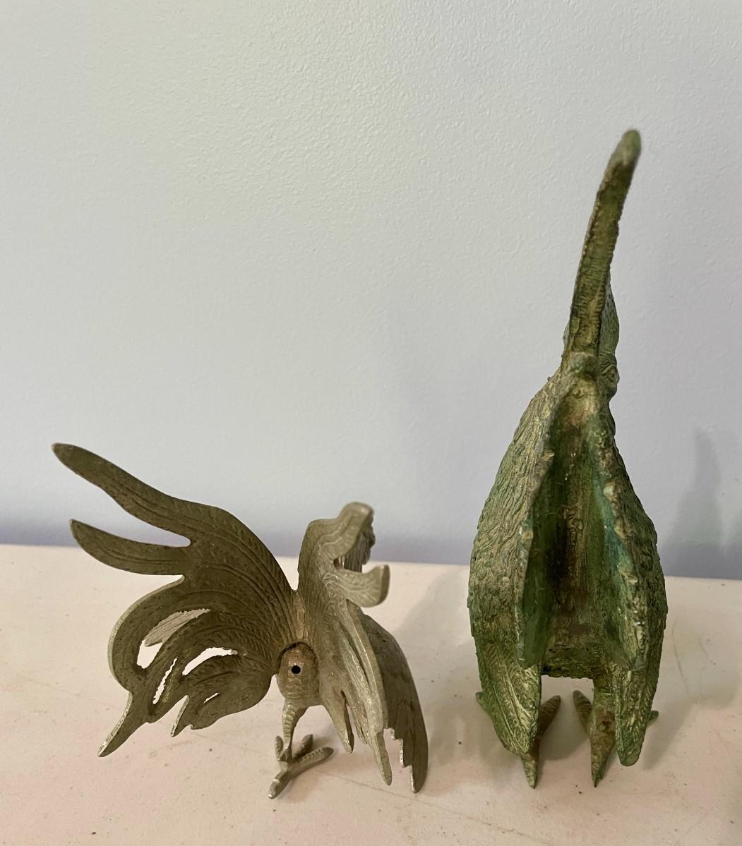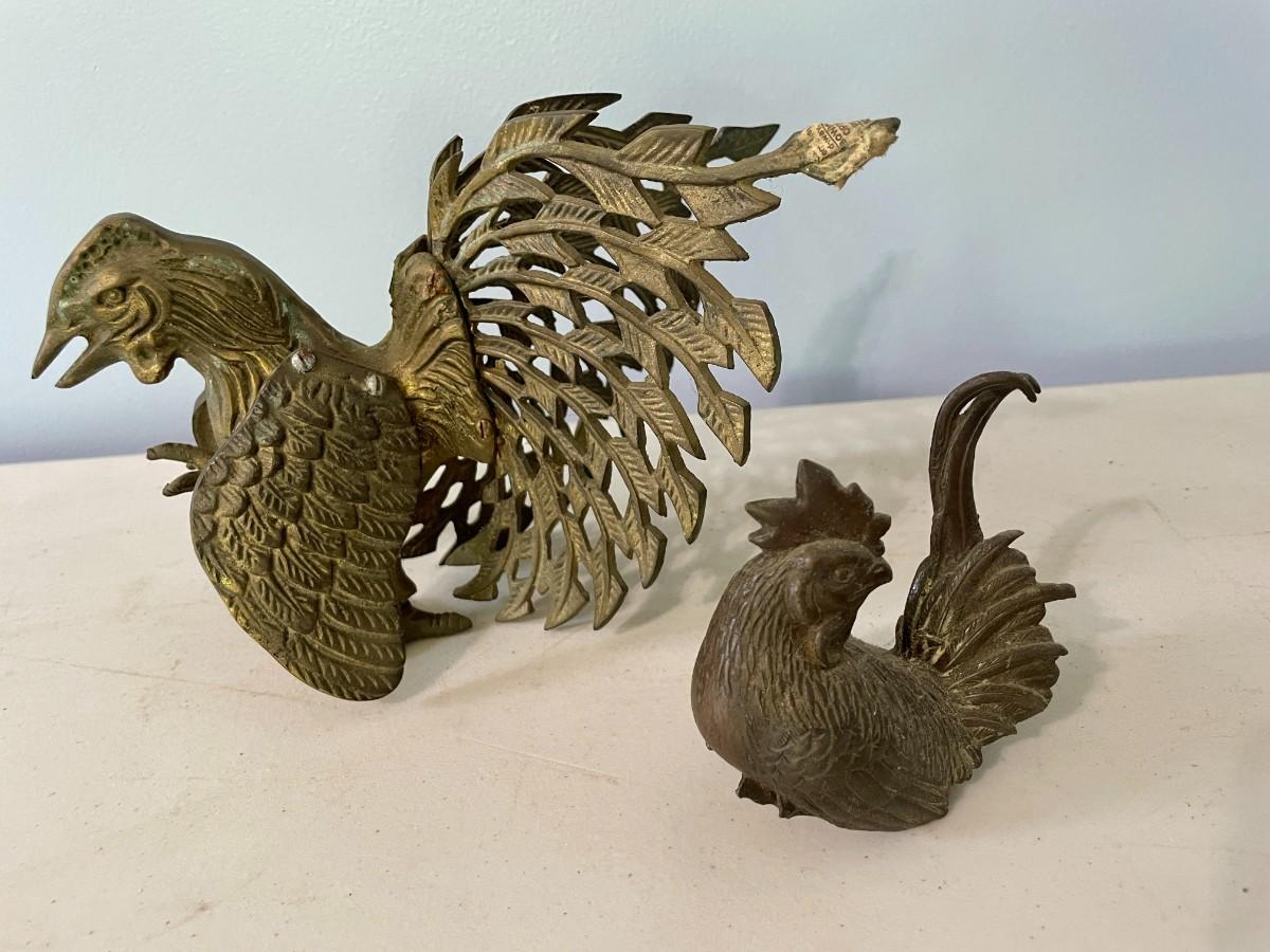 Vintage 5pc lot of metal fighting roosters & copper mold
