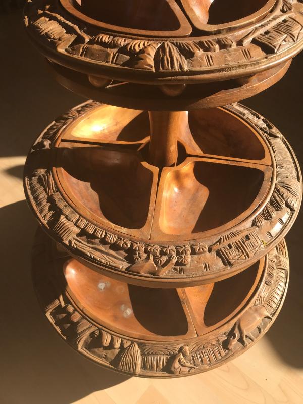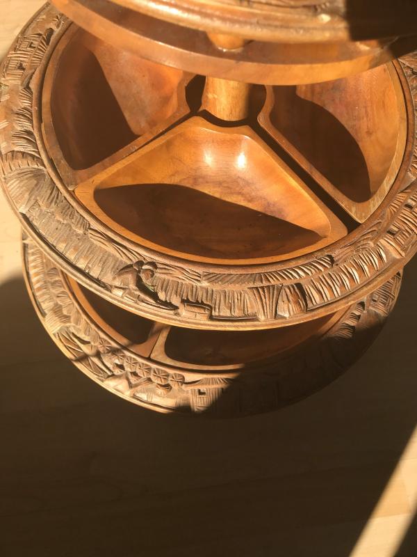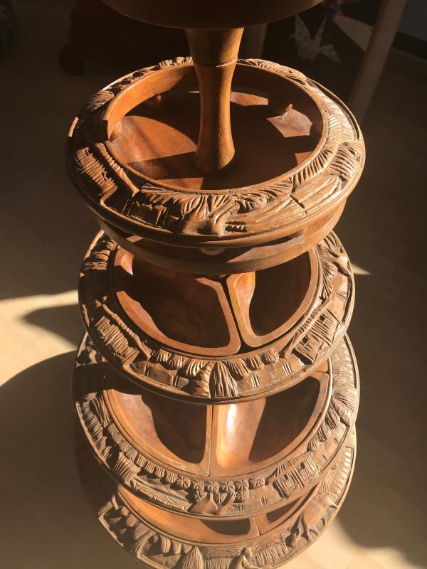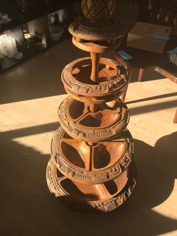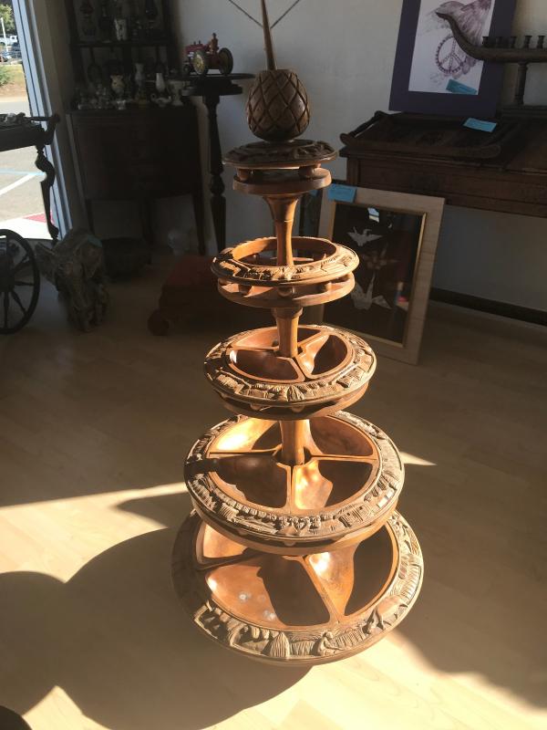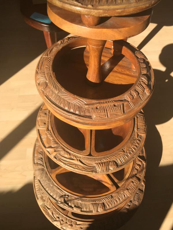 Vintage 5-Tier Wood Tiki Hawaiian Lazy Susan (Item #546)