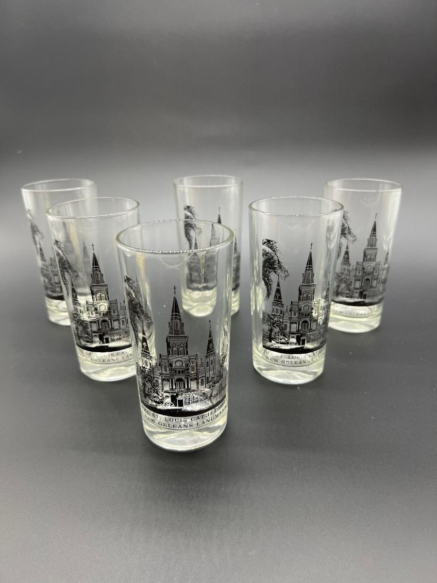 Vintage New Orleans St. Louis Cathedral Glasses 6 inches