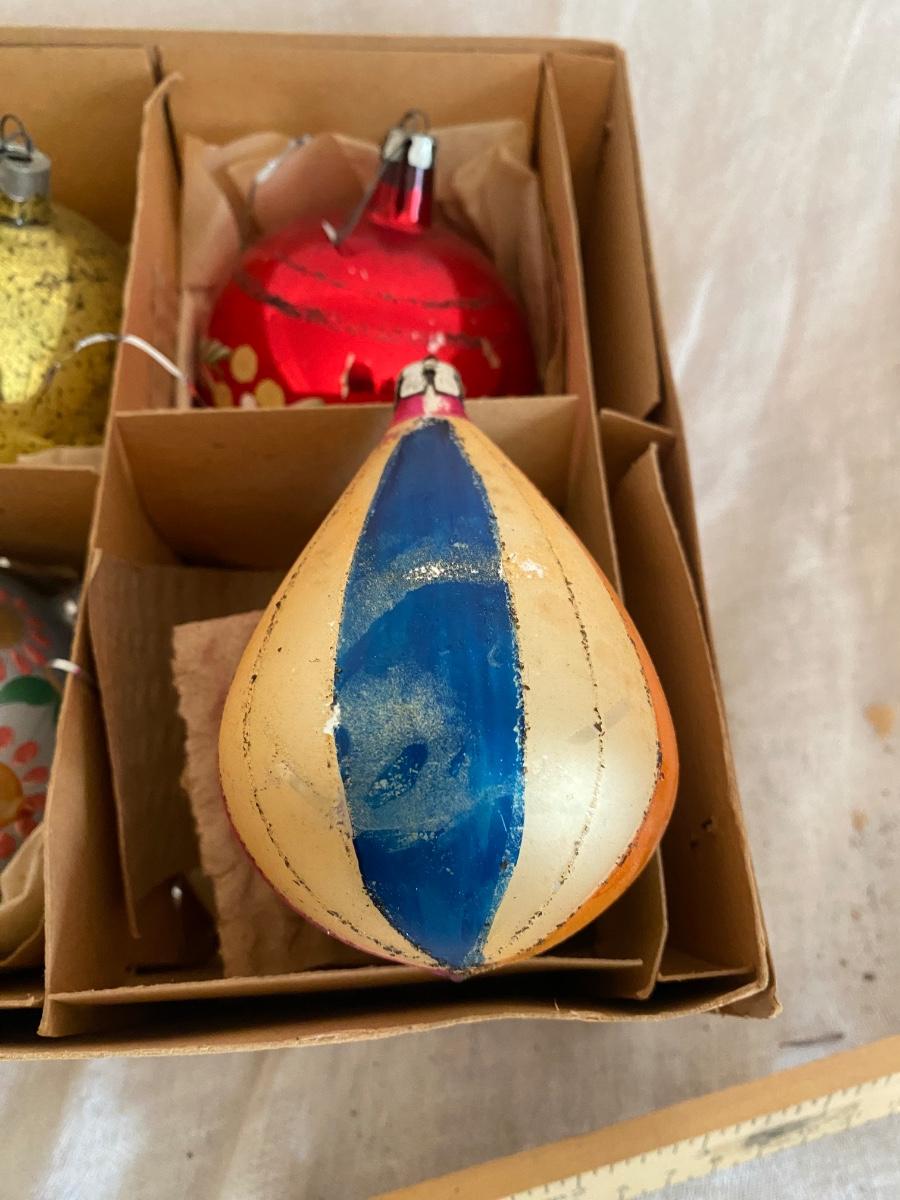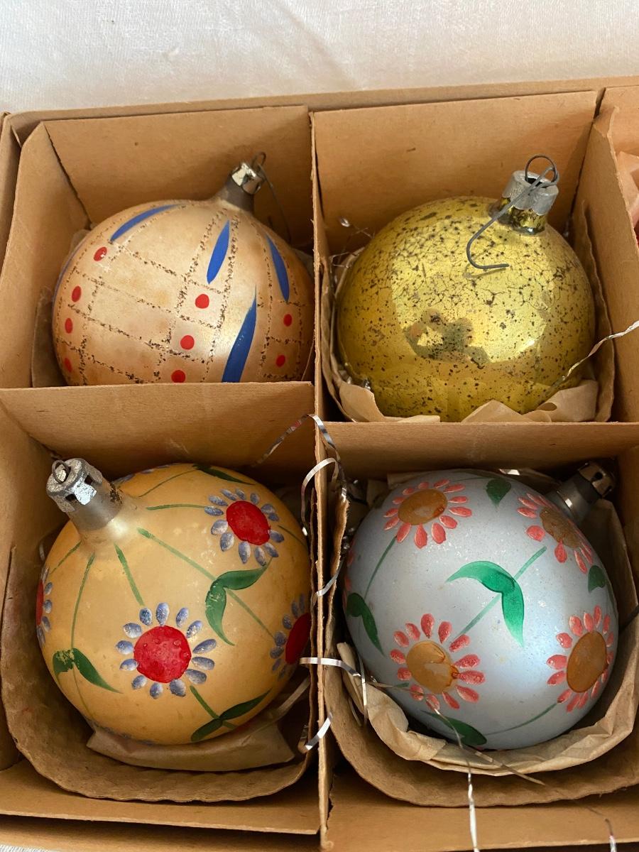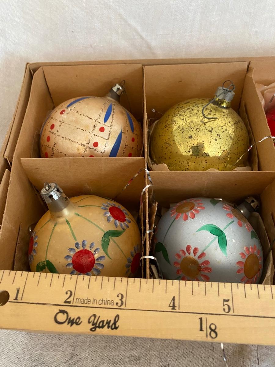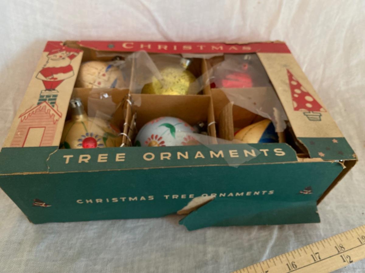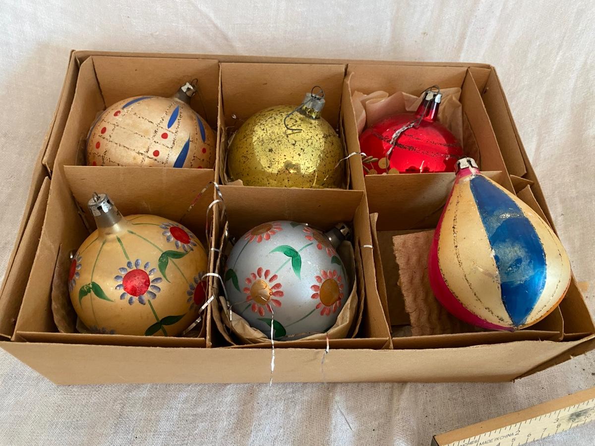 Set of 6 vintage larger sized 2" ornaments all in excellent vintage condition. DOes come with original box though it is torn.