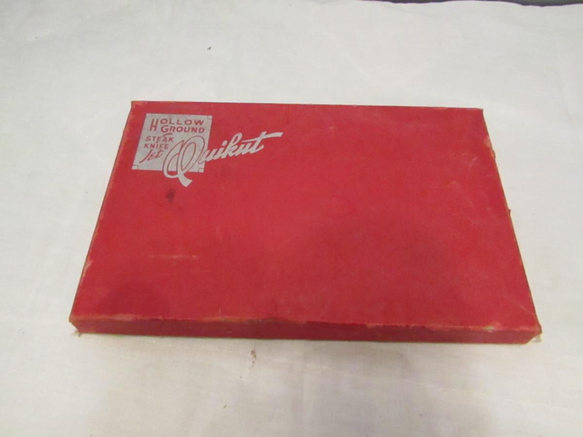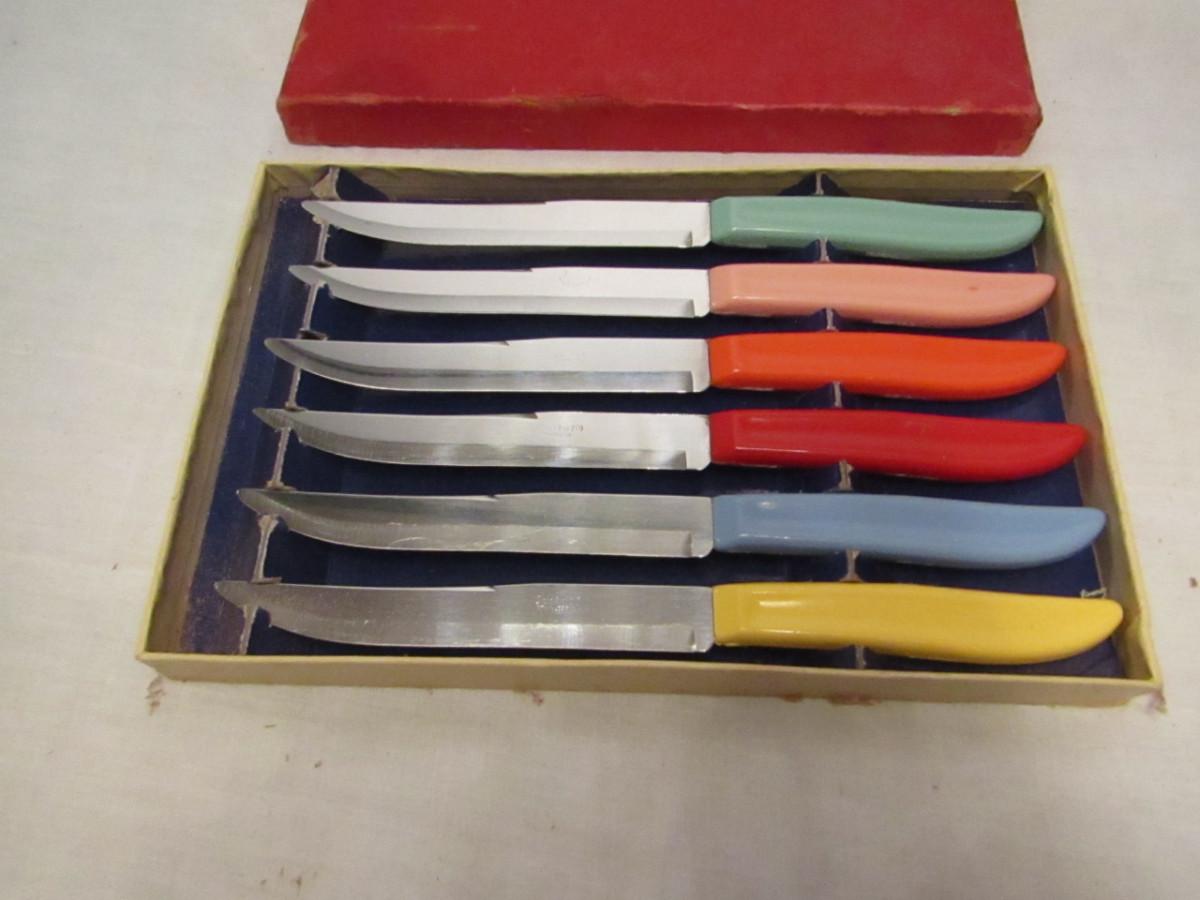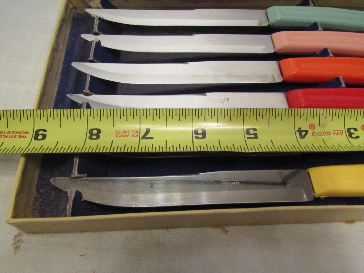 Vintage 6 Piece Quikut Steak Cutlery Set with Multicolored Handles