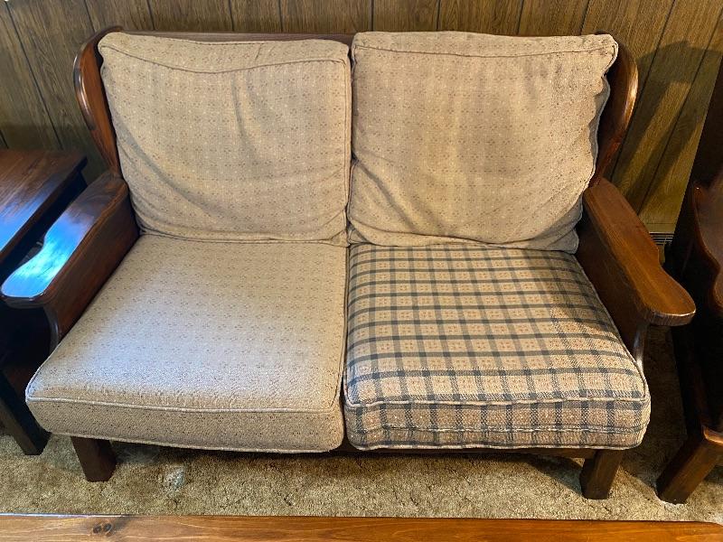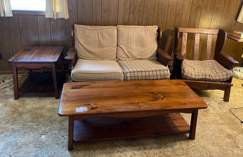 Vintage 6 Piece Solid Pine Living Room Den Sofa Love Seat End Table Coffee Table