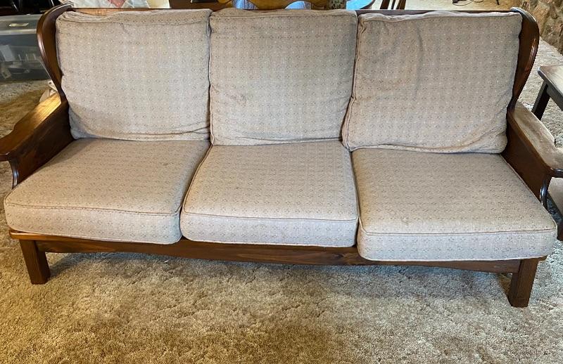 Vintage 6 Piece Solid Pine Living Room Den Sofa Love Seat End Table Coffee Table