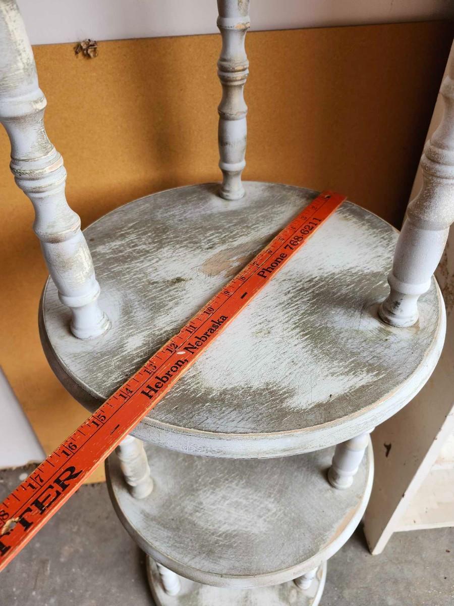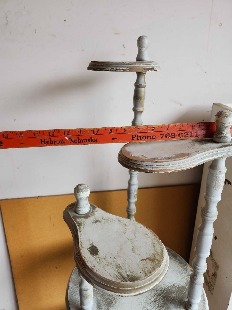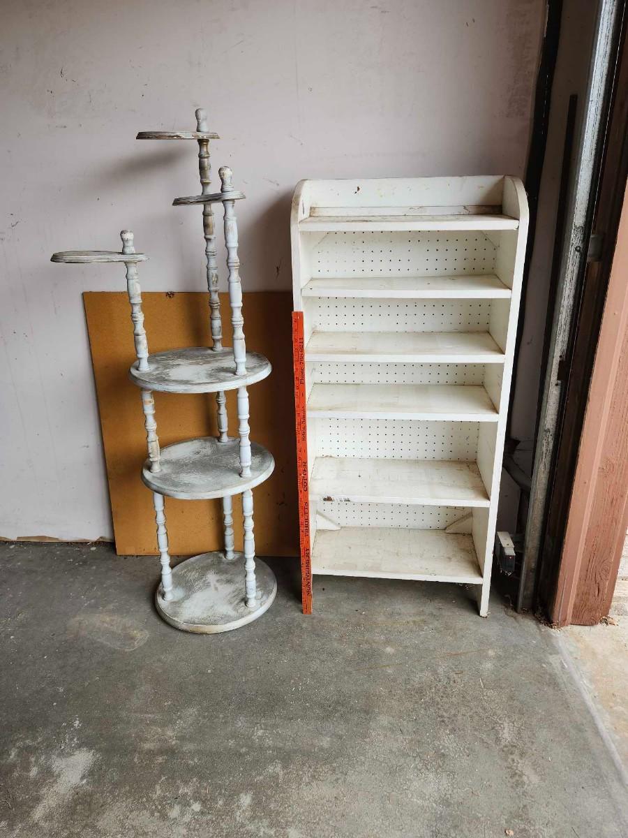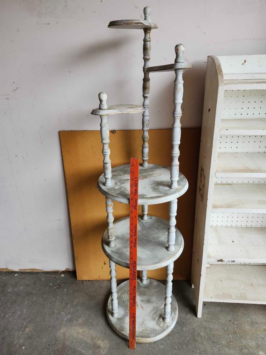 Vintage 6 Shelf Round Wooden Shelf, Plant stand and White book shelf