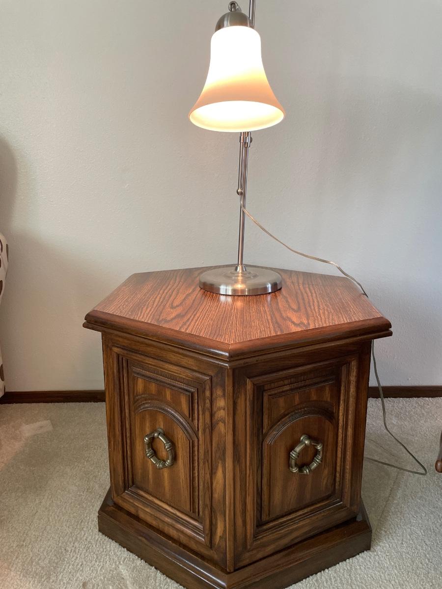 Vintage 6 sided end table and lamp