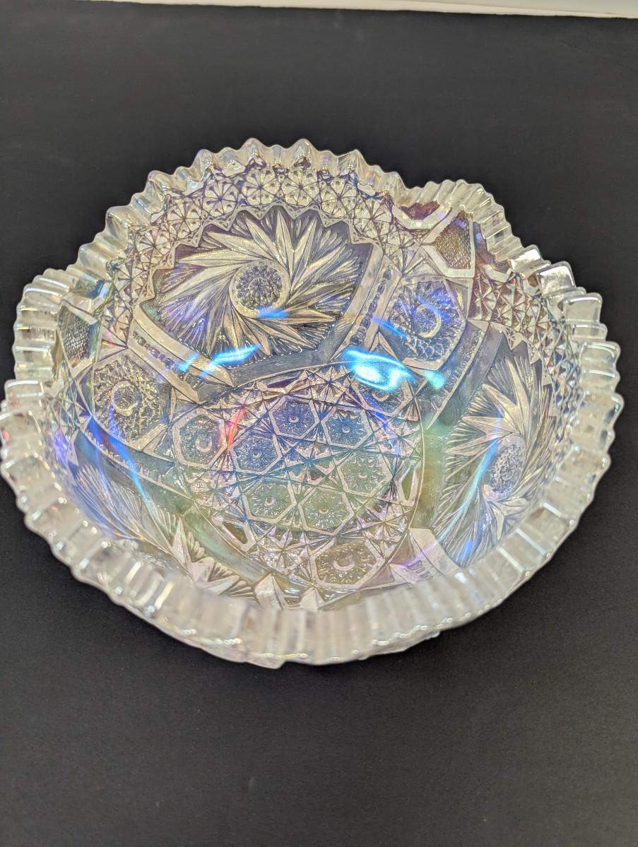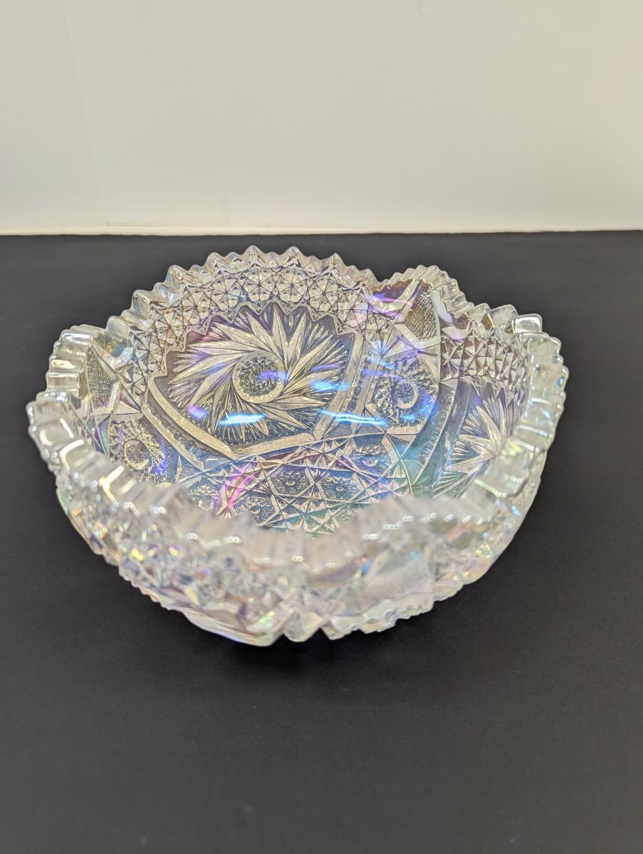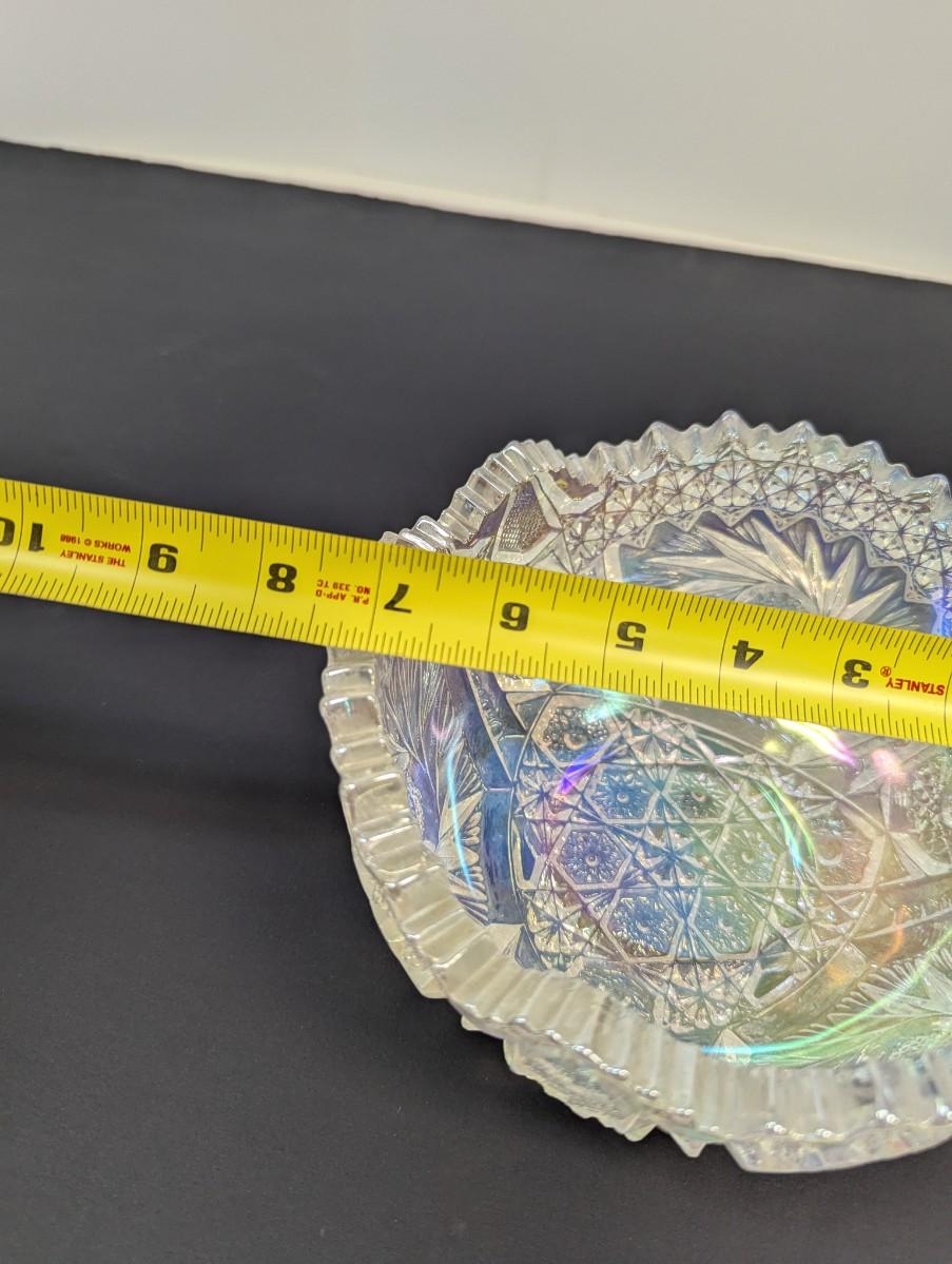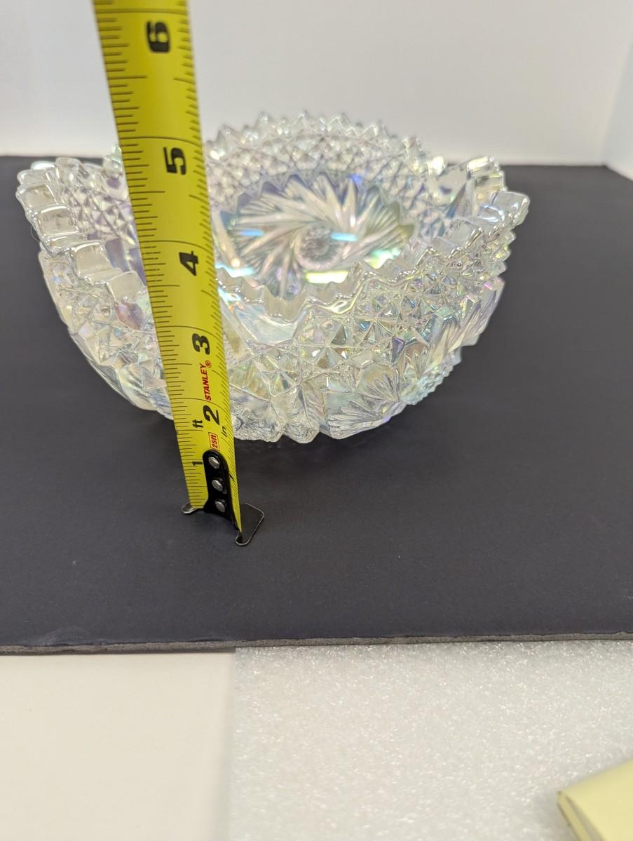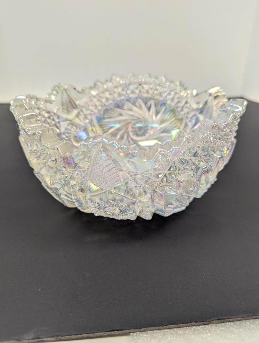 Vintage 60's L.E. Smith Iridescent Crystal Lustre Clear Carnival Glass Candy Bowl