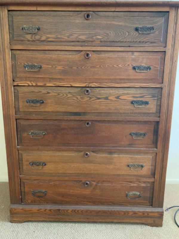 Vintage 6-drawer oak dresser (38”x18”x49.5”)