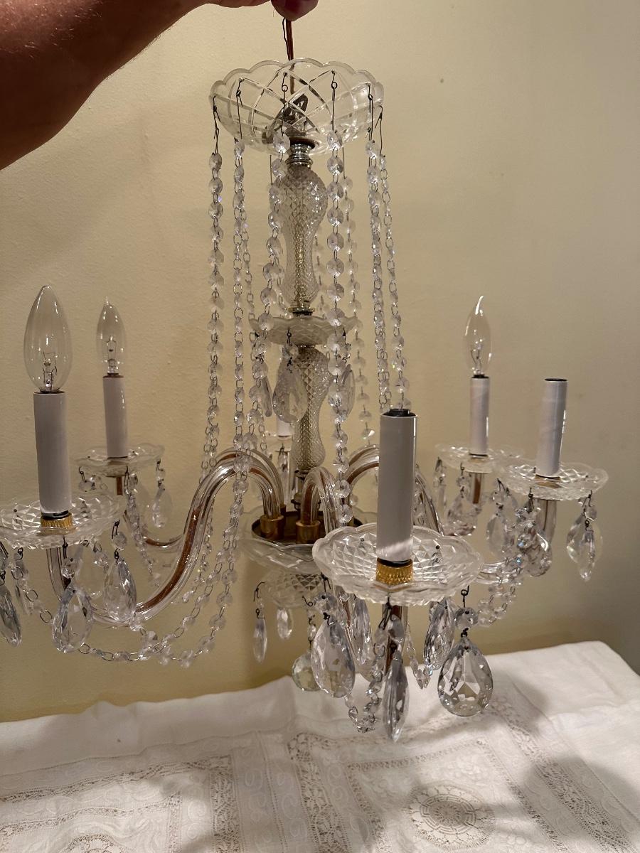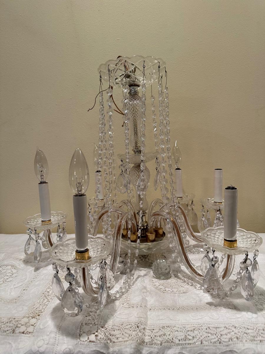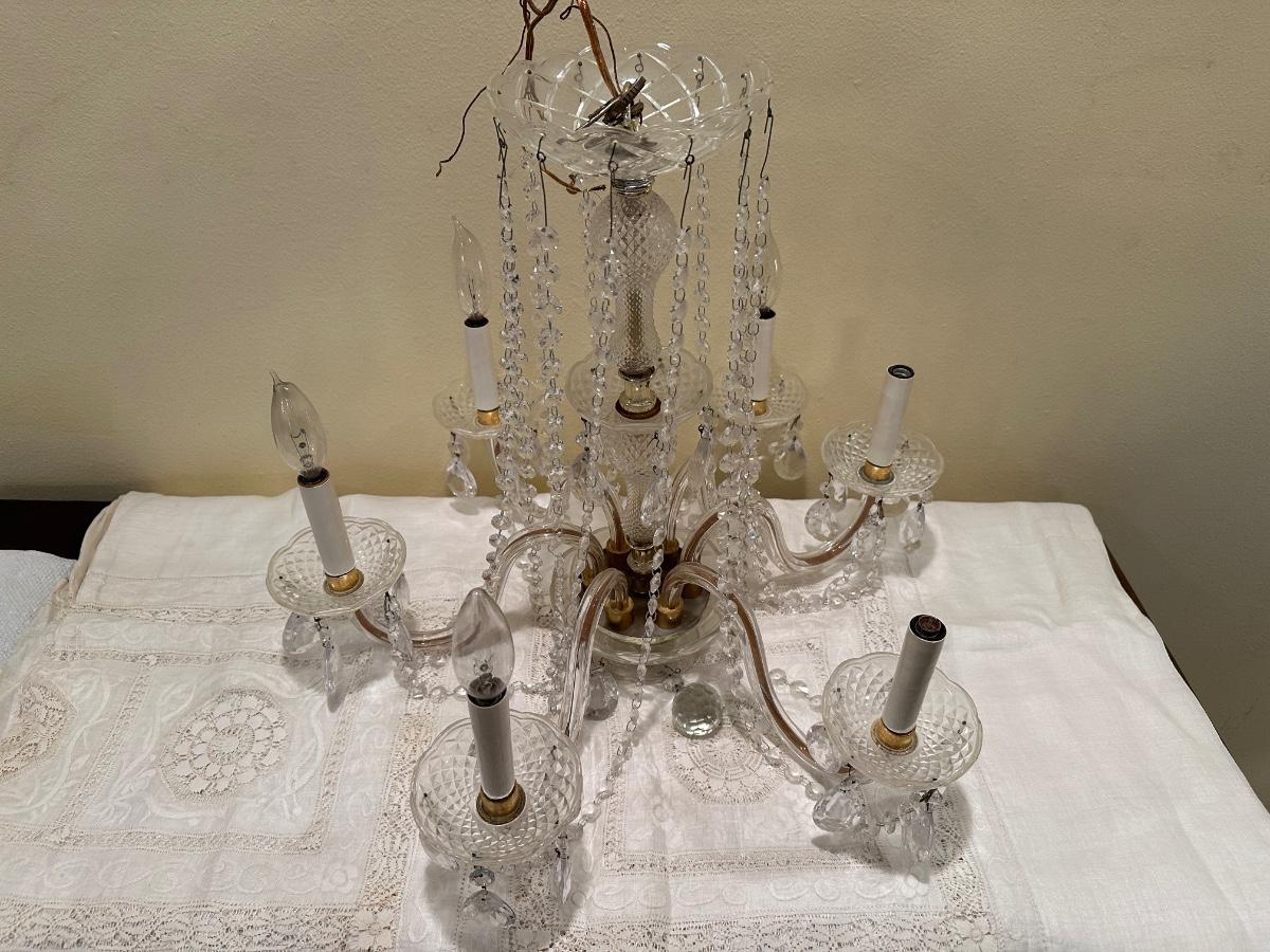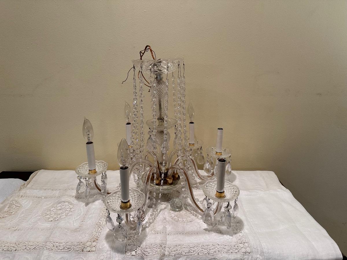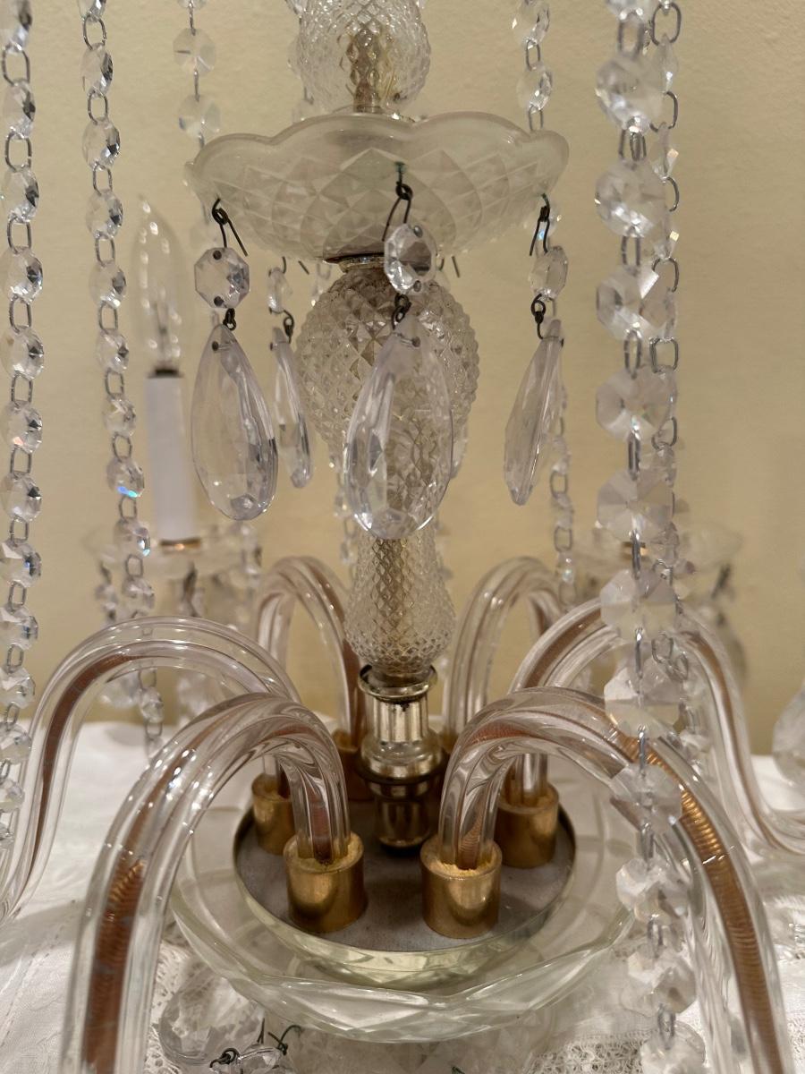 Vintage 6-Light Glass Chandelier with Hanging Prisms