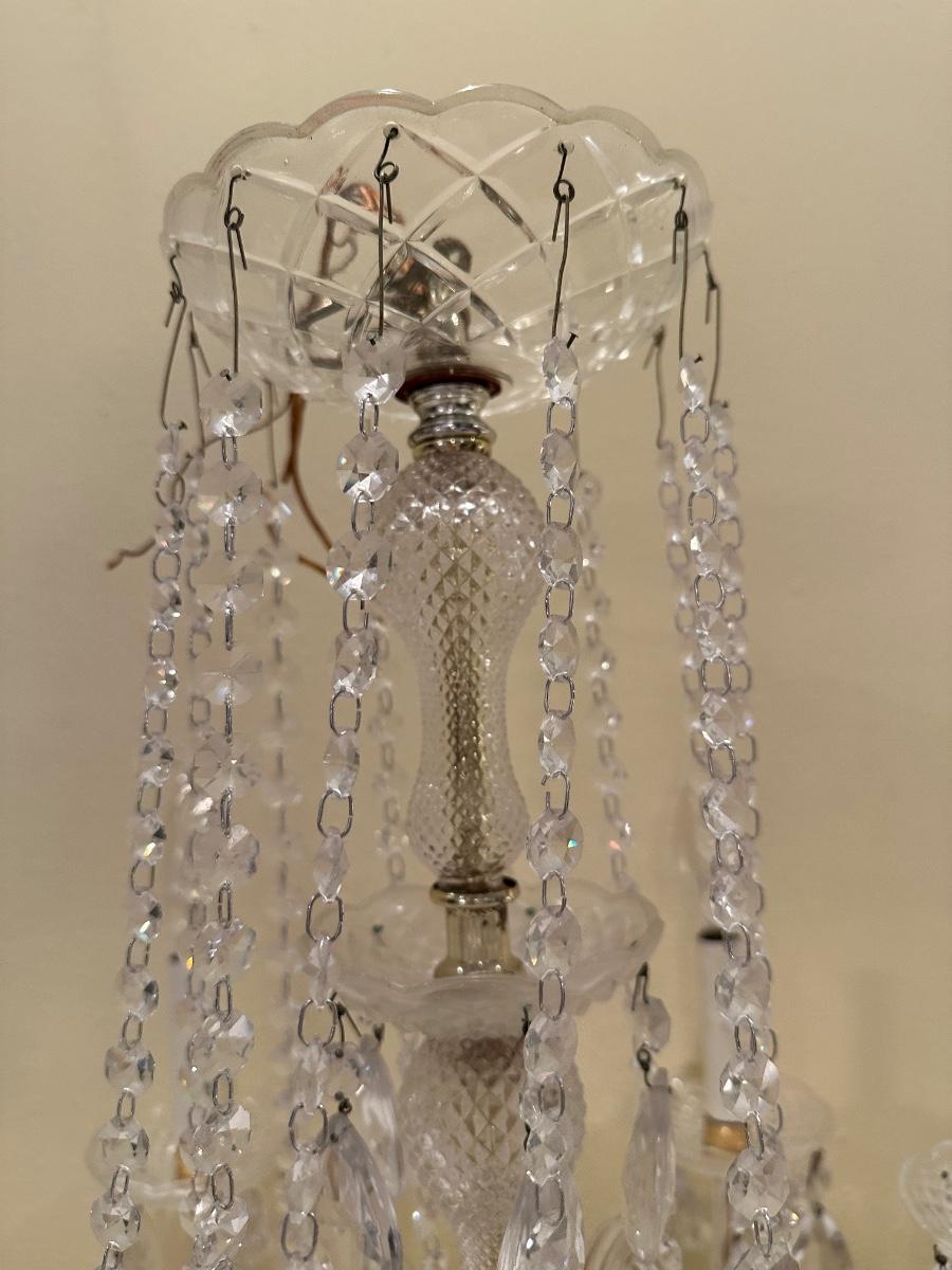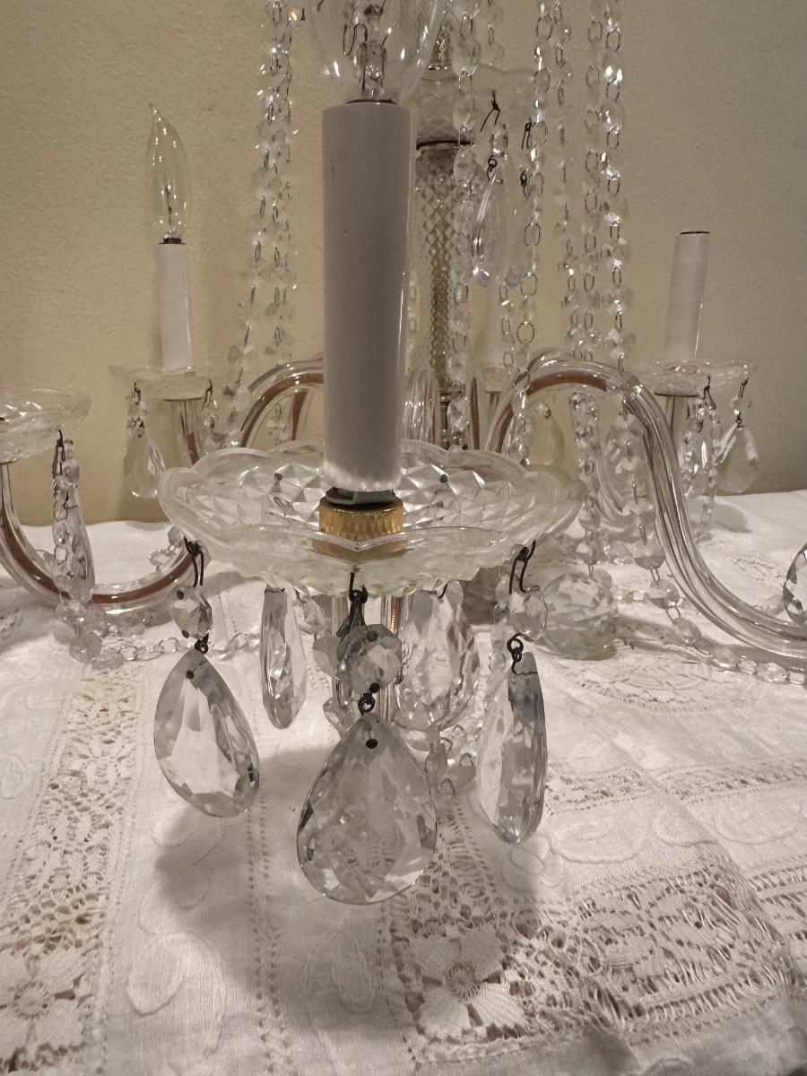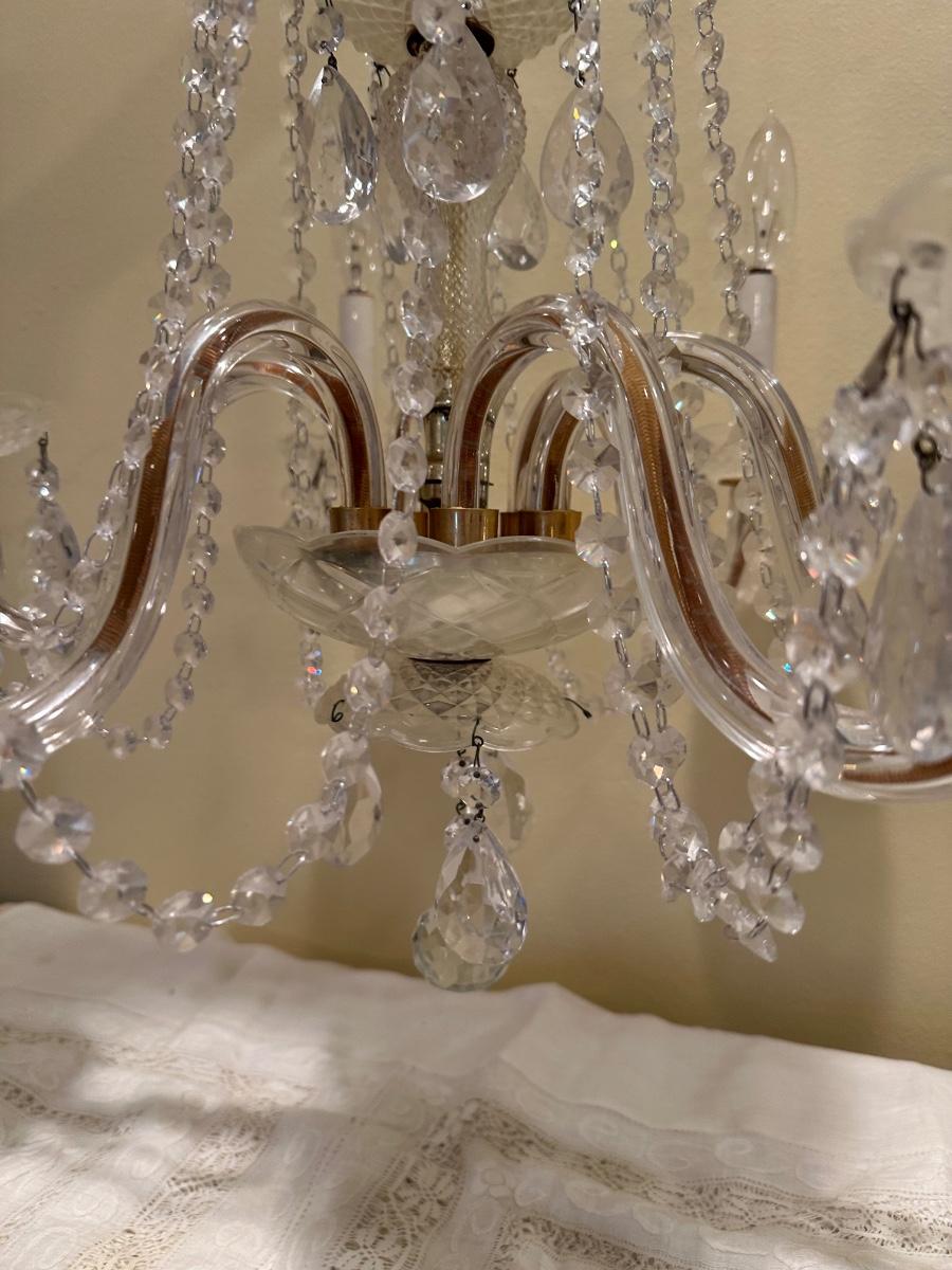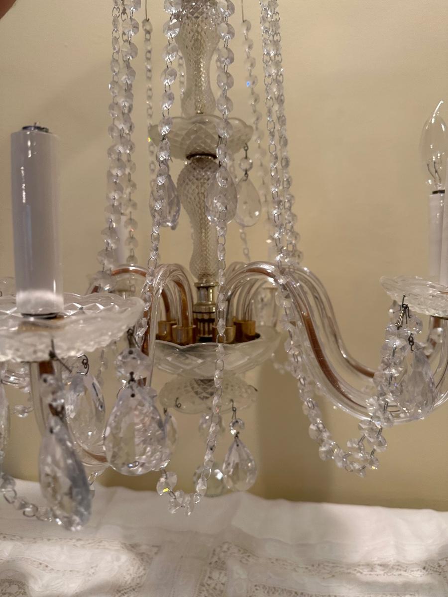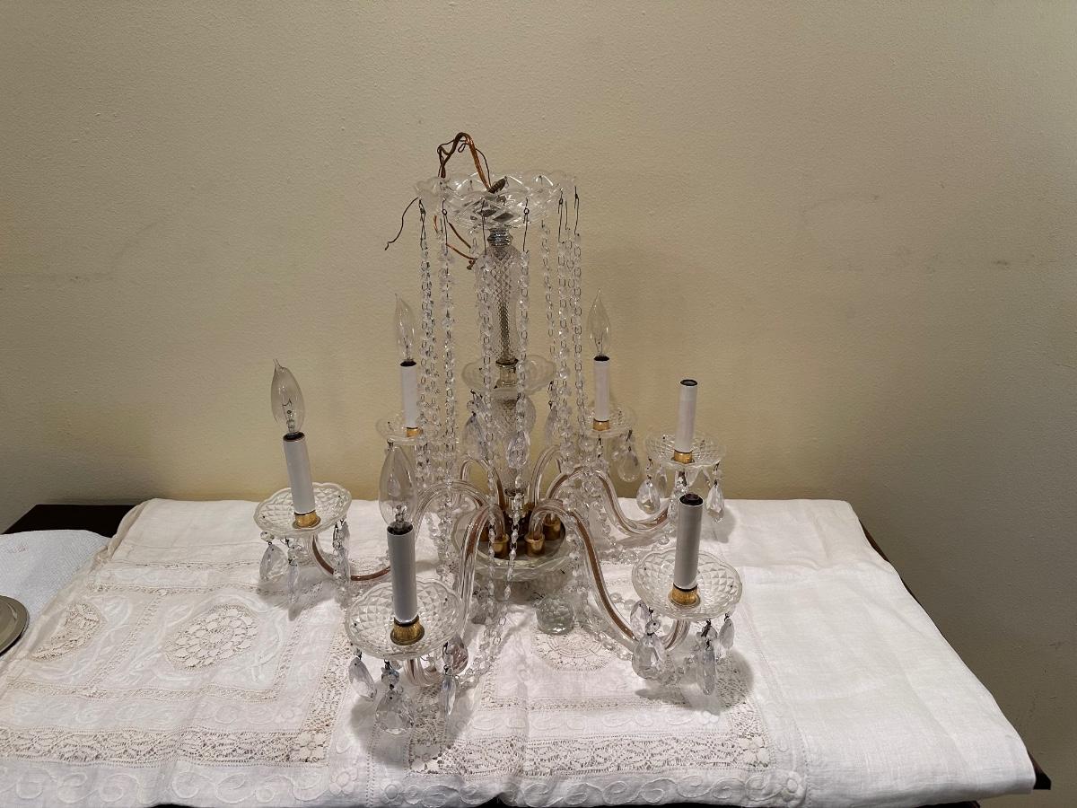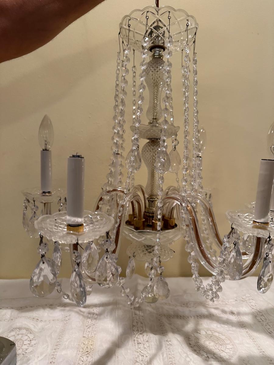 Vintage 6-Light Glass Chandelier with Hanging Prisms