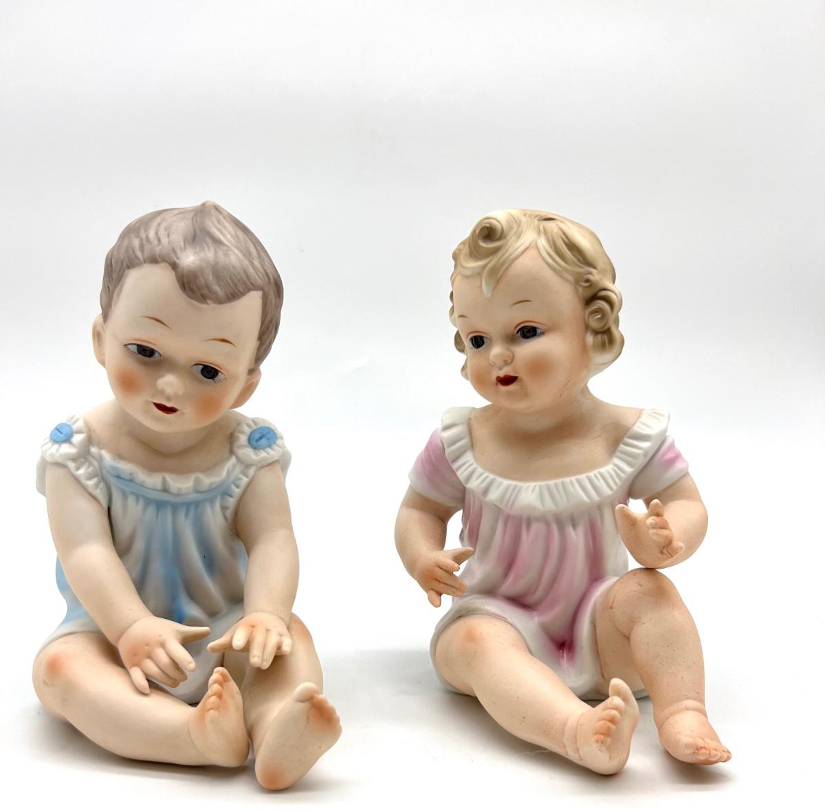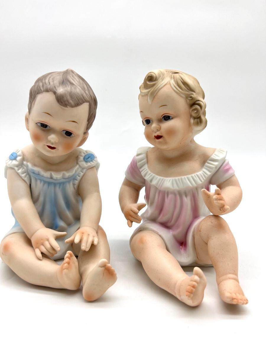 Vintage Porcelain Piano Baby Girl and baby boy measuring 7 inches tall.