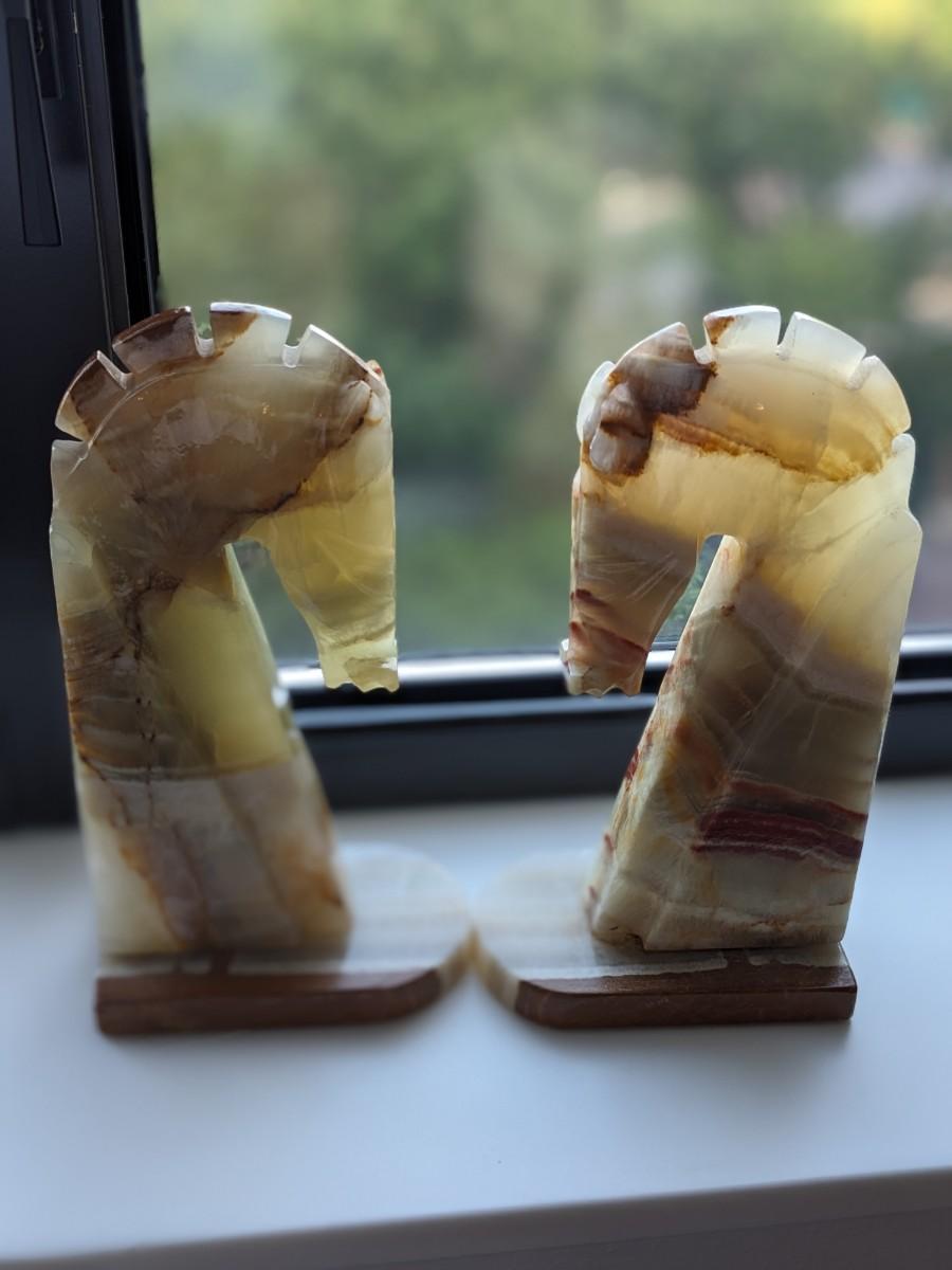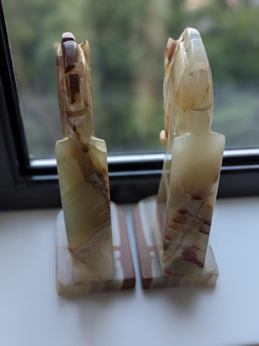 Vintage 7” Marble Onyx Trojan Horse Bookends