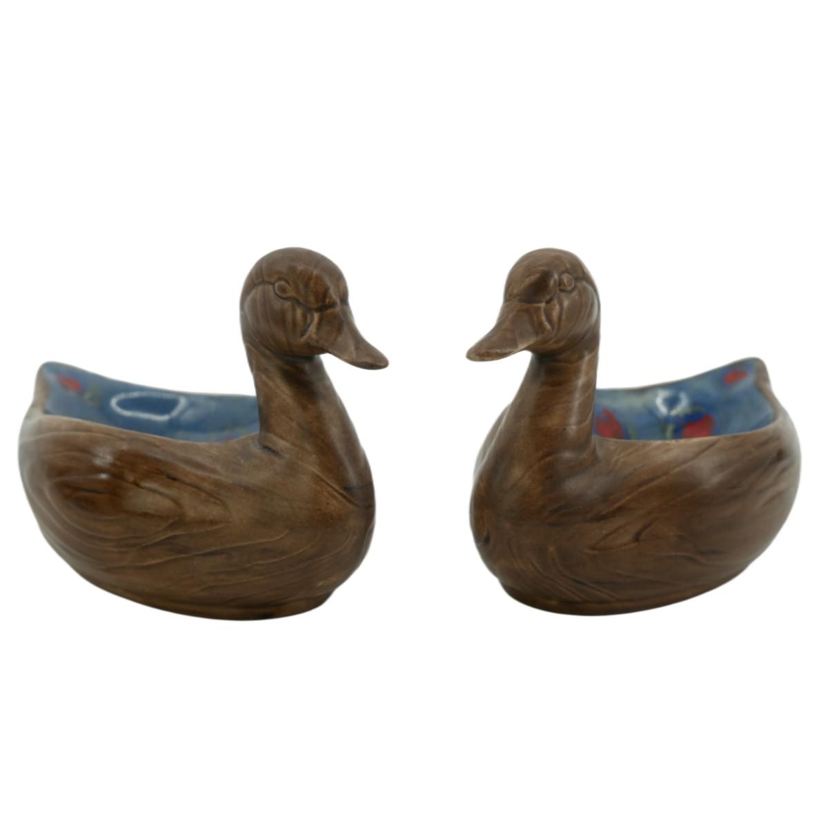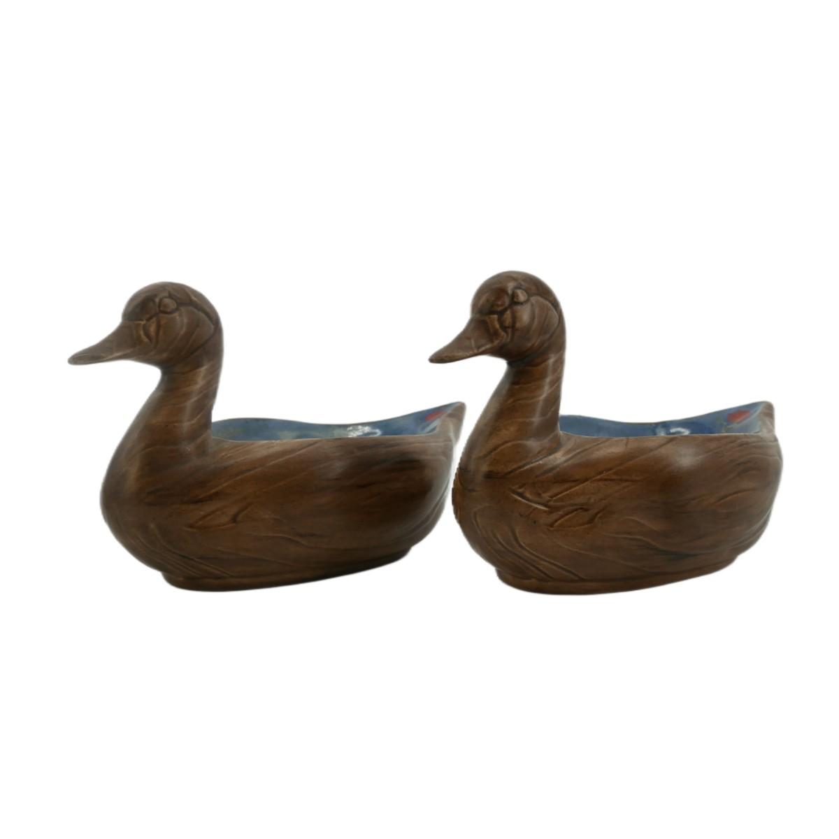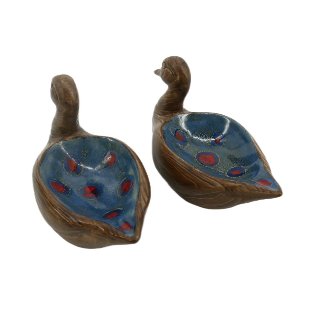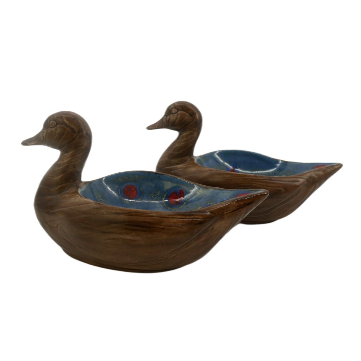 Two vintage 1973 duck trinket jewelry dishes. Hand-painted and signed on bottom. Each measures 6" x 3" x 3", total weight 1 lb. No issues found!
